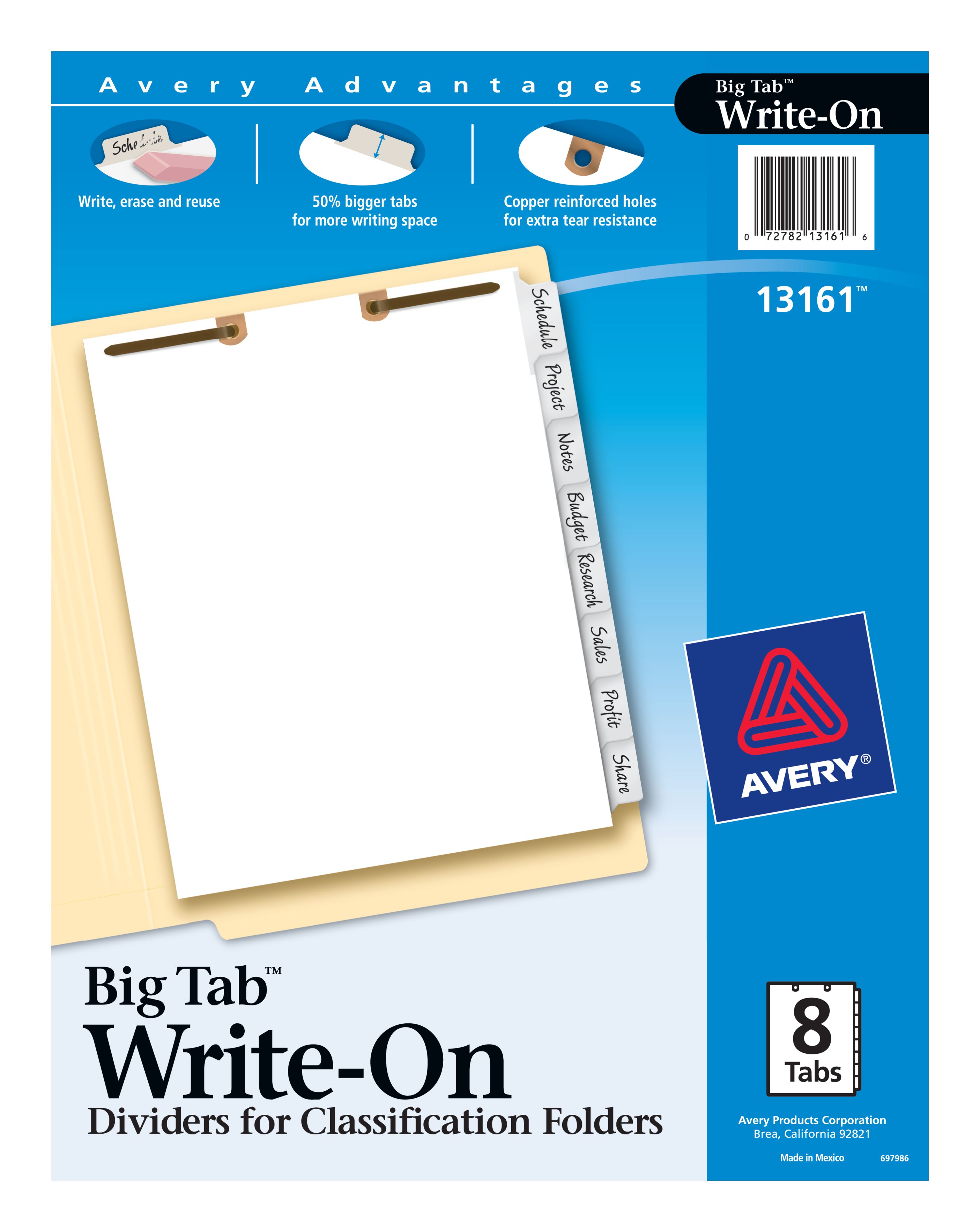 Avery® Big Tab™ Write & Erase Dividers for Classification Folders, Side Tabs, 8-Tab Set (13161)