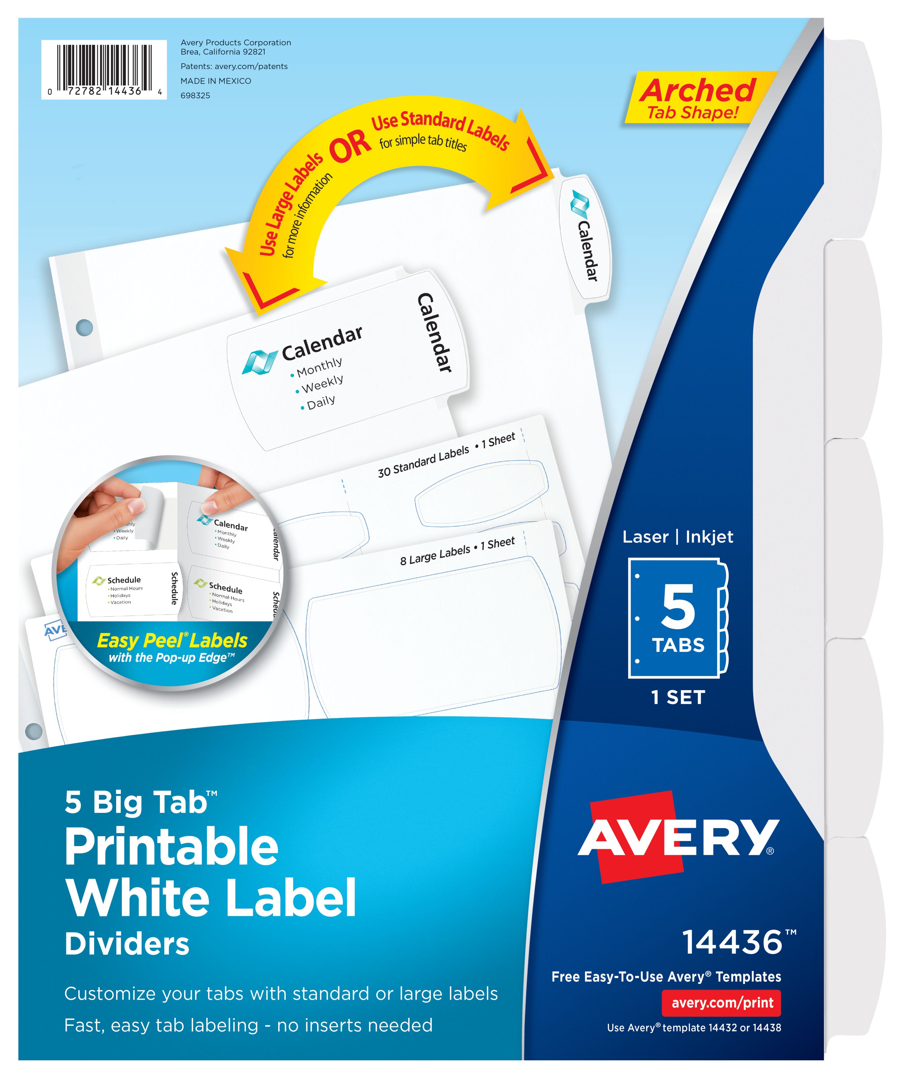 Avery® Big Tab™ Printable Label Dividers, Easy Peel®, 5-Tab Set (14436)