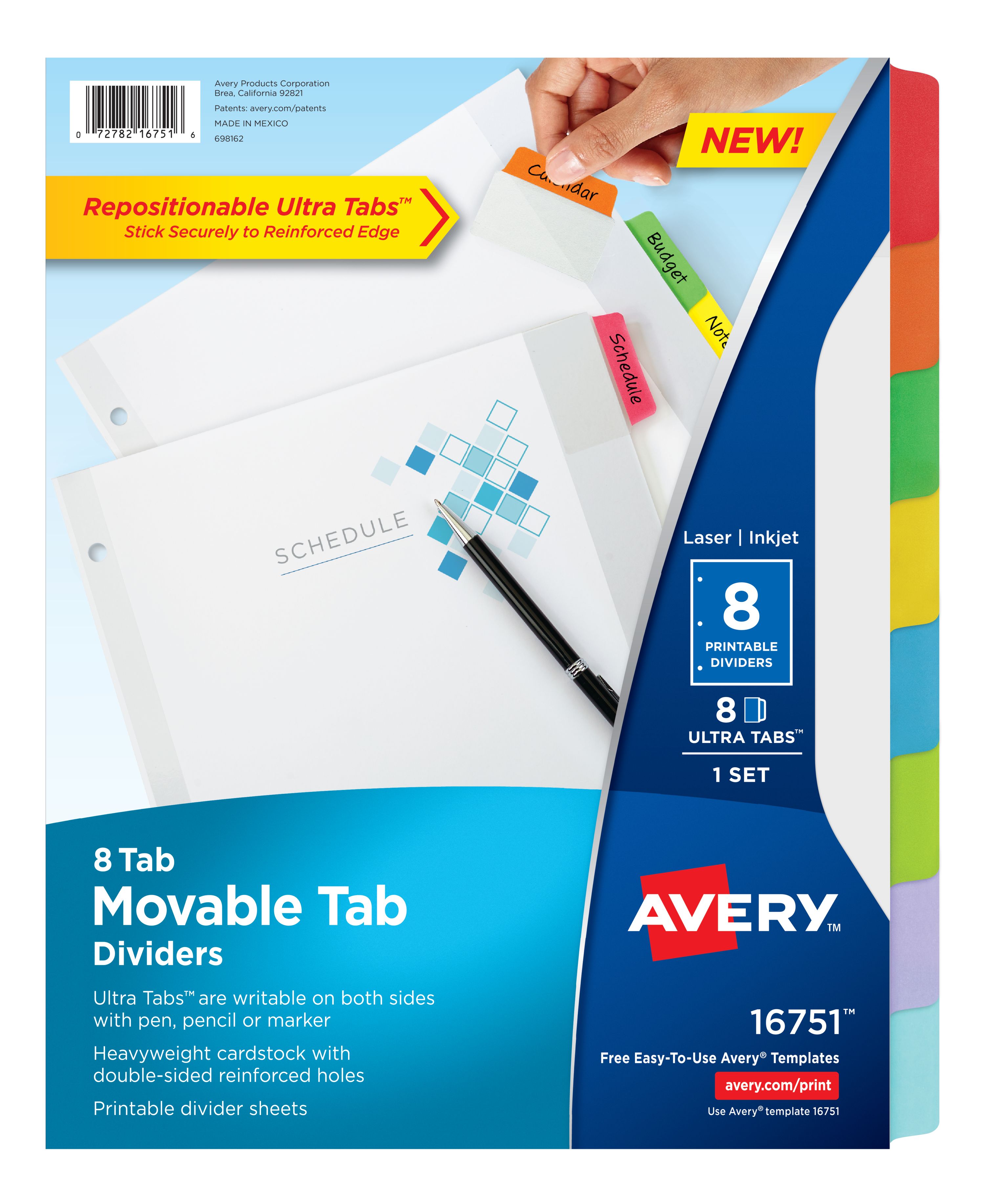 - Dividers are customizable with free designs and templates at avery.com/print , and compatible with both laser and inkjet printers