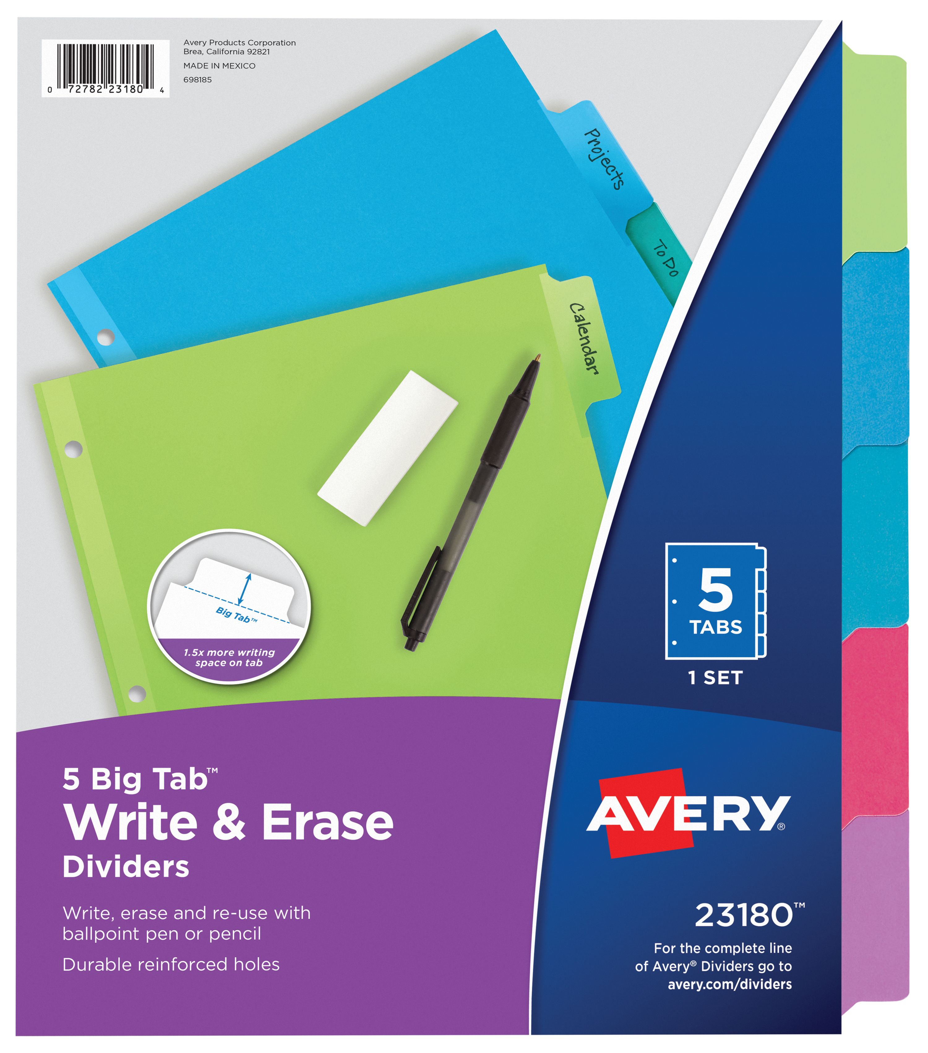 Avery® Big Tab™ Write & Erase Dividers, 5-Tab Set, Multicolor (23180)