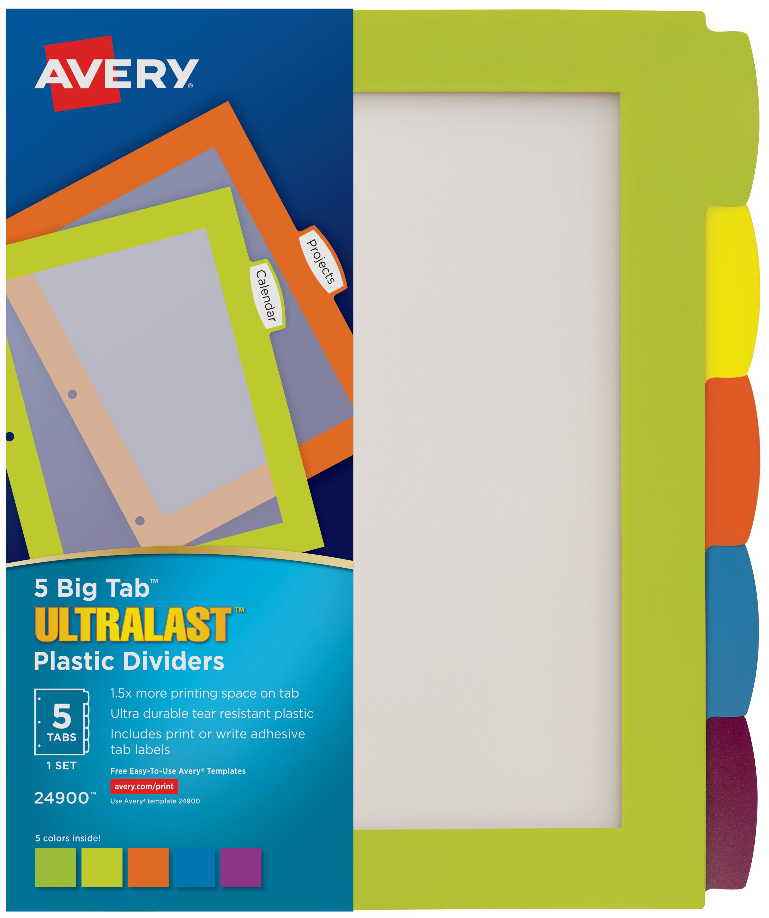 Avery® Ultralast™ Big Tab™ Plastic Dividers, 5-Tab Set, Multicolor (24900)