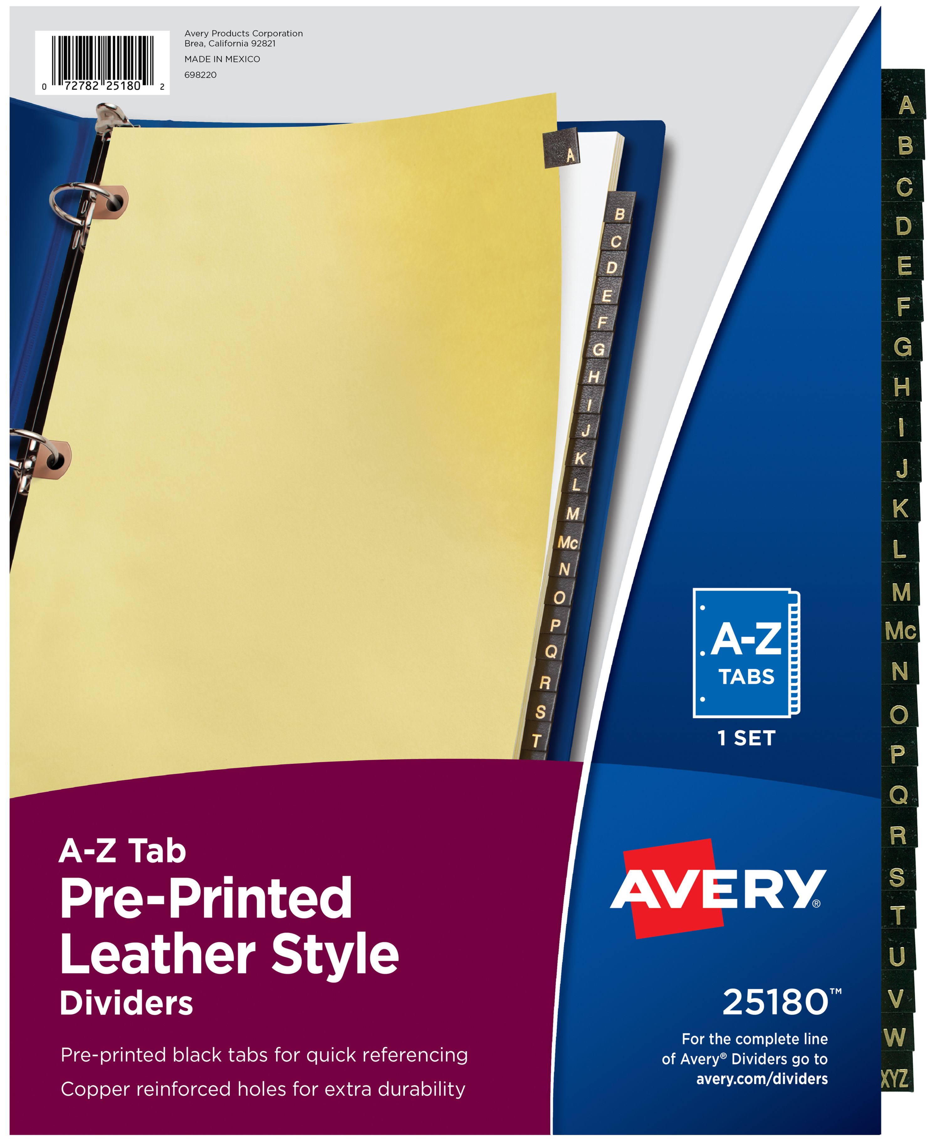 Avery® Black Leather Preprinted Dividers, 25-Tab Set, A-Z (25180)