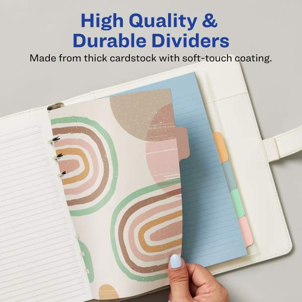 Avery® Planner Dividers, 6-Tab Set, A5 Planner Size, "Boho Rainbows" Design, 1 Set (25439)