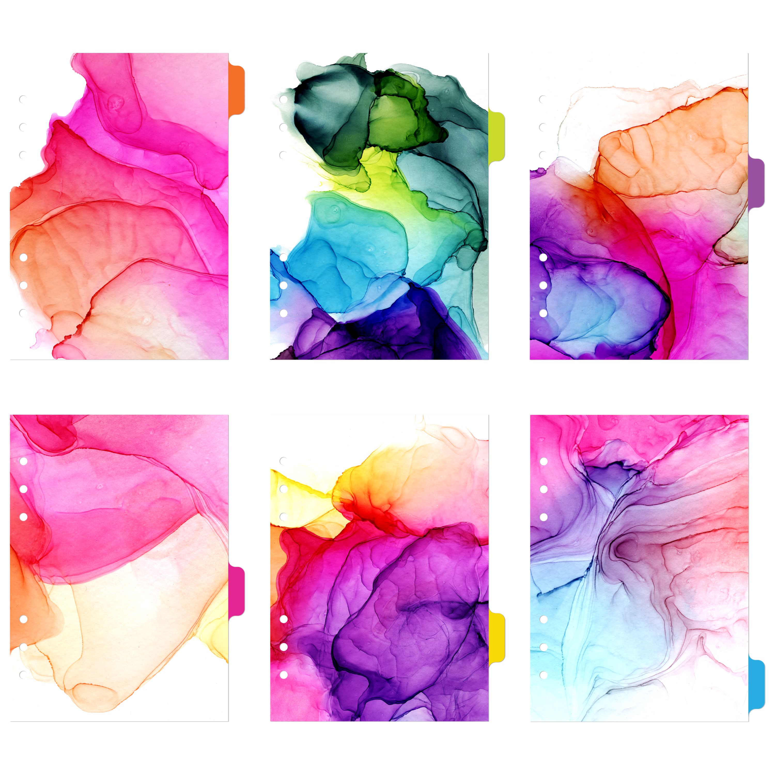 Avery® Planner Dividers, 6-Tab Set, A5 Planner Size, "Splash" Watercolor Design, 1 Set (25441)
