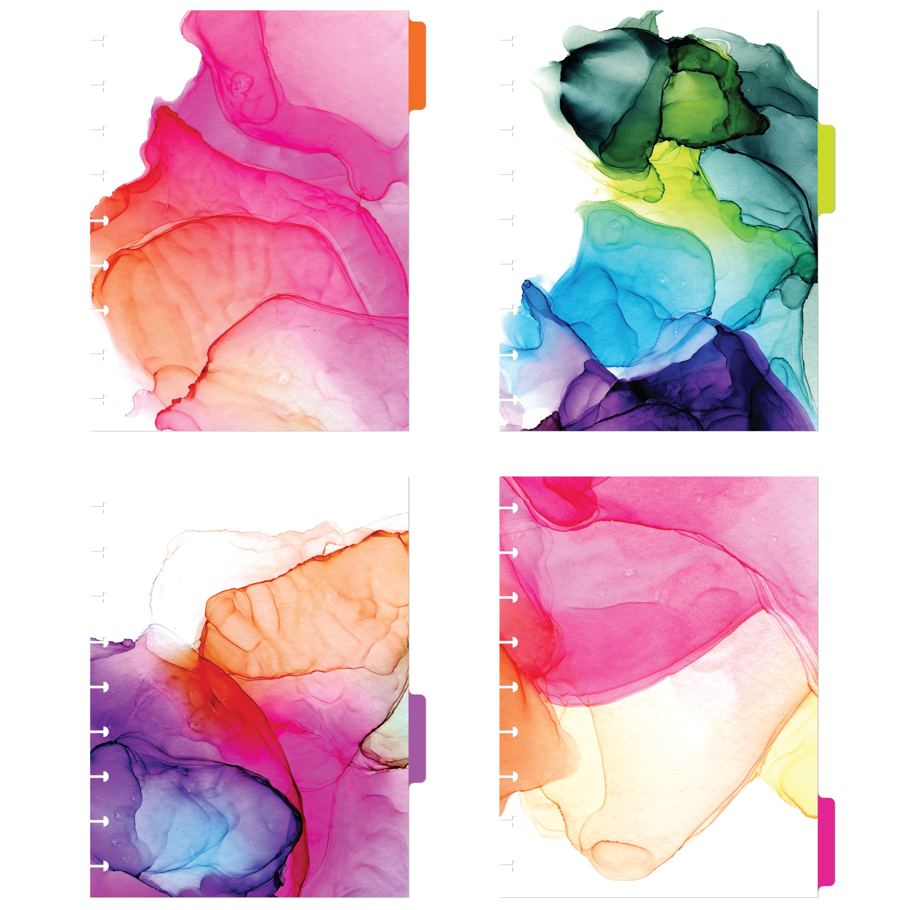 Avery® Planner Dividers, 4-Tab Set, Happy Planner 9-Disc Size, "Splash" Watercolor Design, 1 Set (25482)
