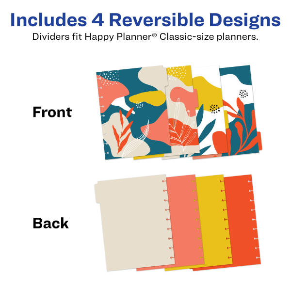 Avery® Planner Dividers, 4-Tab Set, Happy Planner 9-Disc Size, "Foliage" Design, 1 Set (25485)