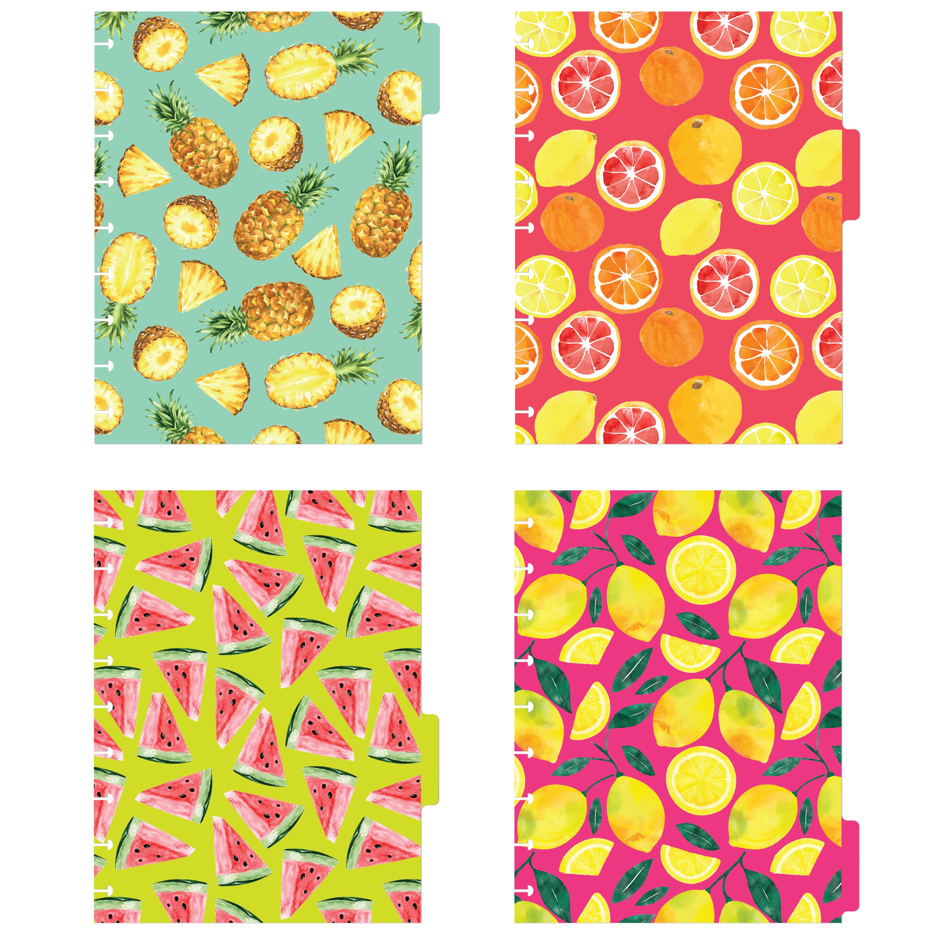 Avery® Planner Dividers, 4-Tab Set, Happy Planner 9-Disc Size, "Watercolor Fruits" Food Design, 1 Set (25492)