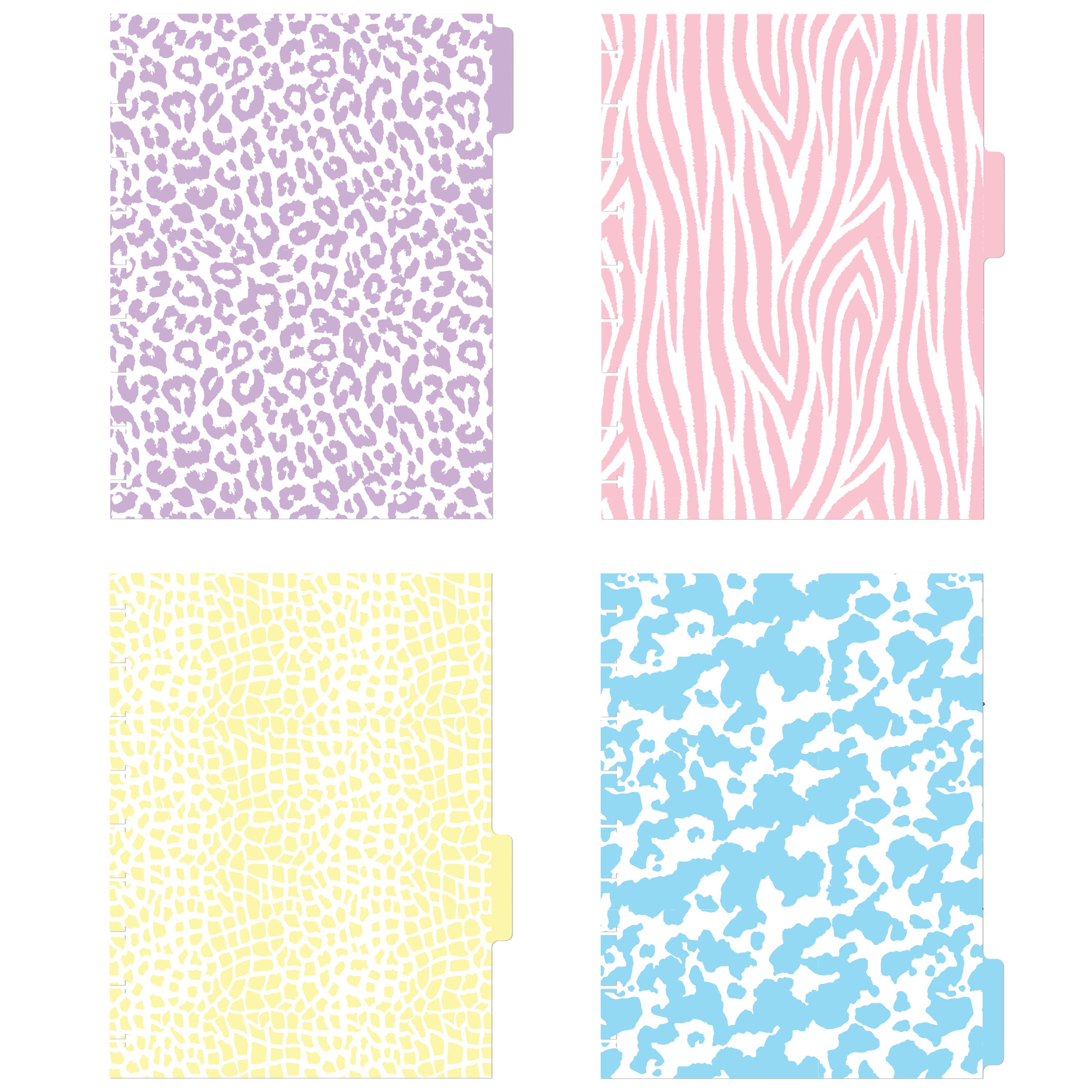- Complement your planner with fashionable planner dividers with tabs featuring our Pastel Animal Print Design