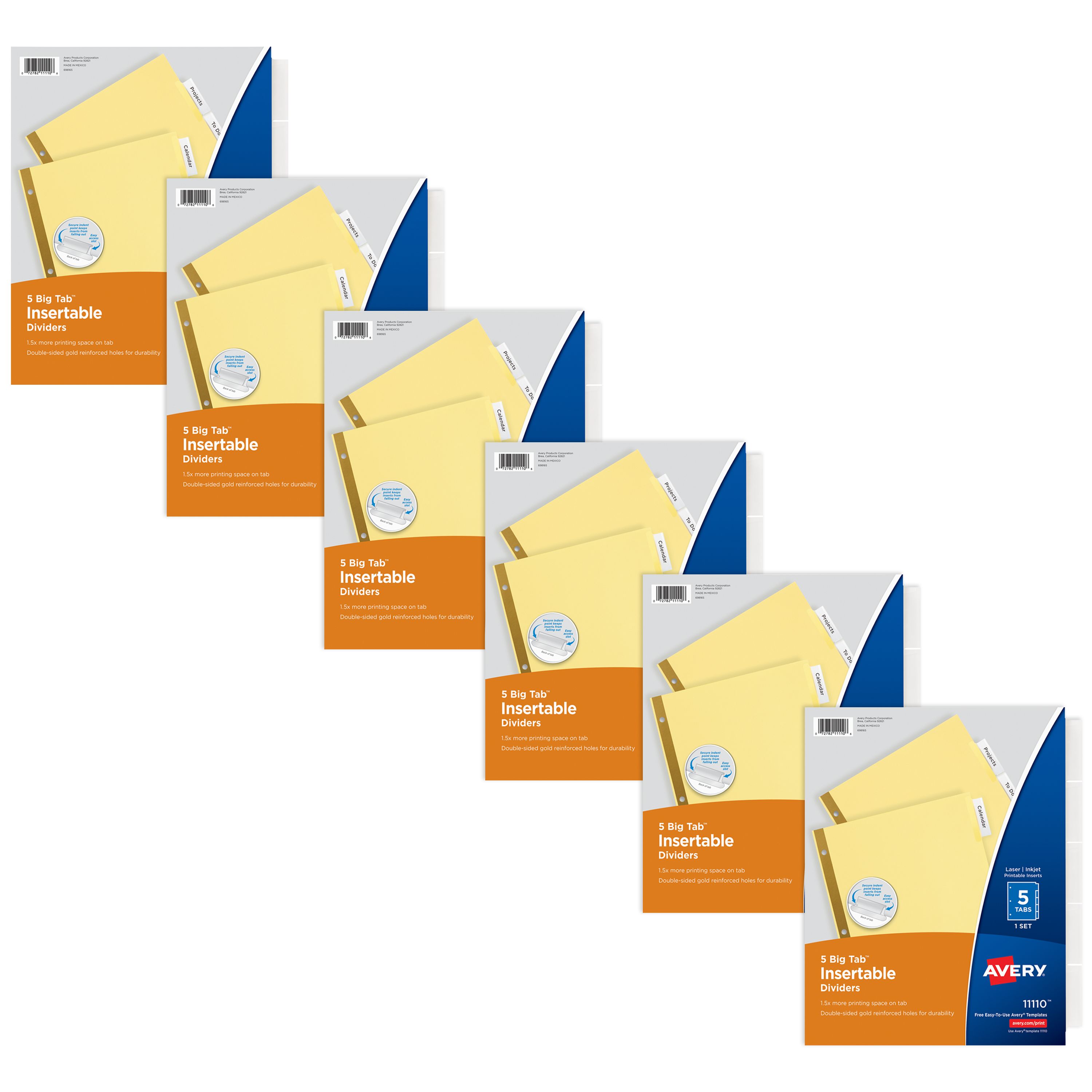 - Always stay organized with Avery Big Tab 5-tab binder dividers with clear insertable tabs, buff-colored paper and tear-resistant laminated holes