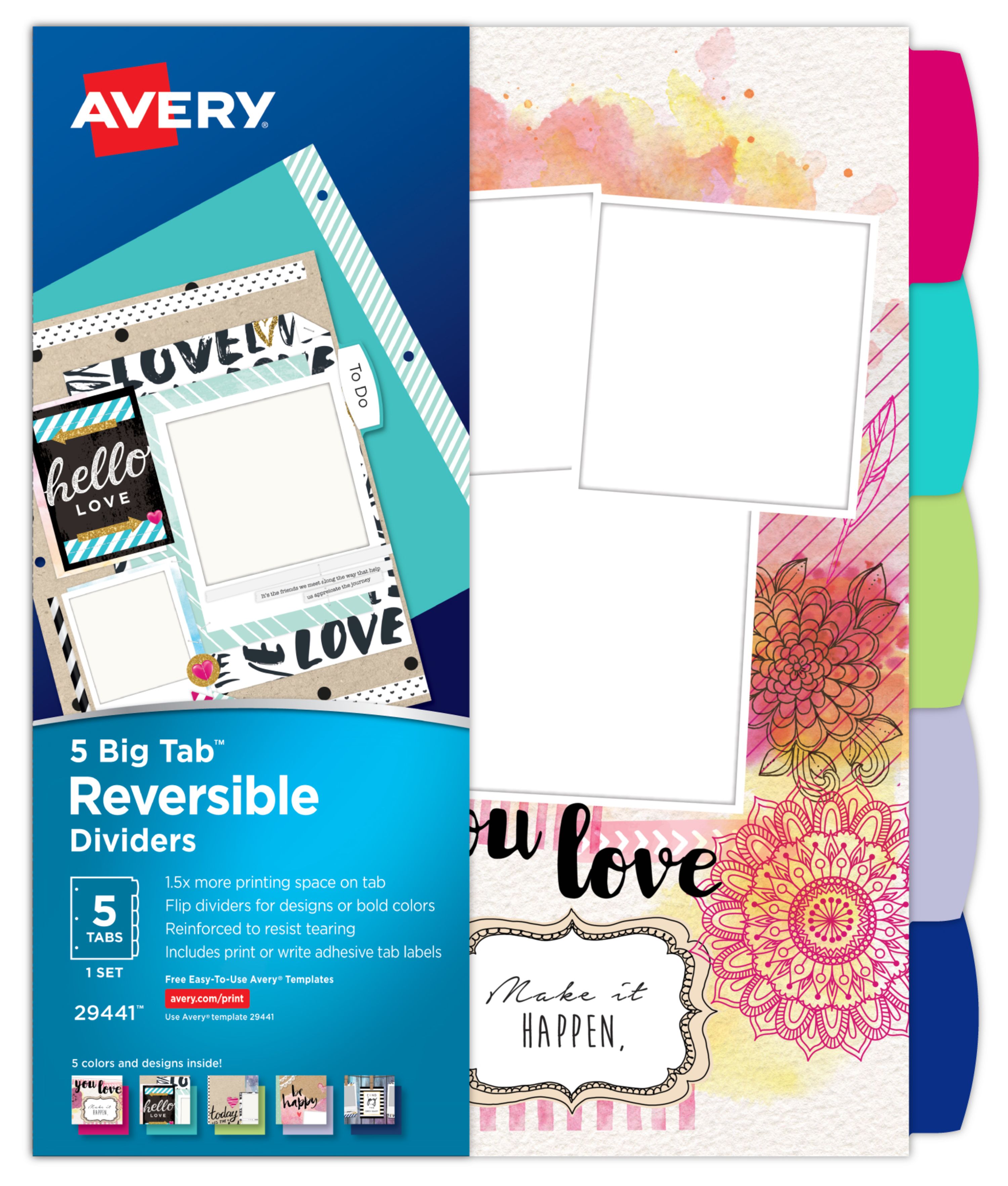 Avery® Big Tab™ Reversible Fashion Dividers, Assorted Designs, 5-Tab Set (29441)