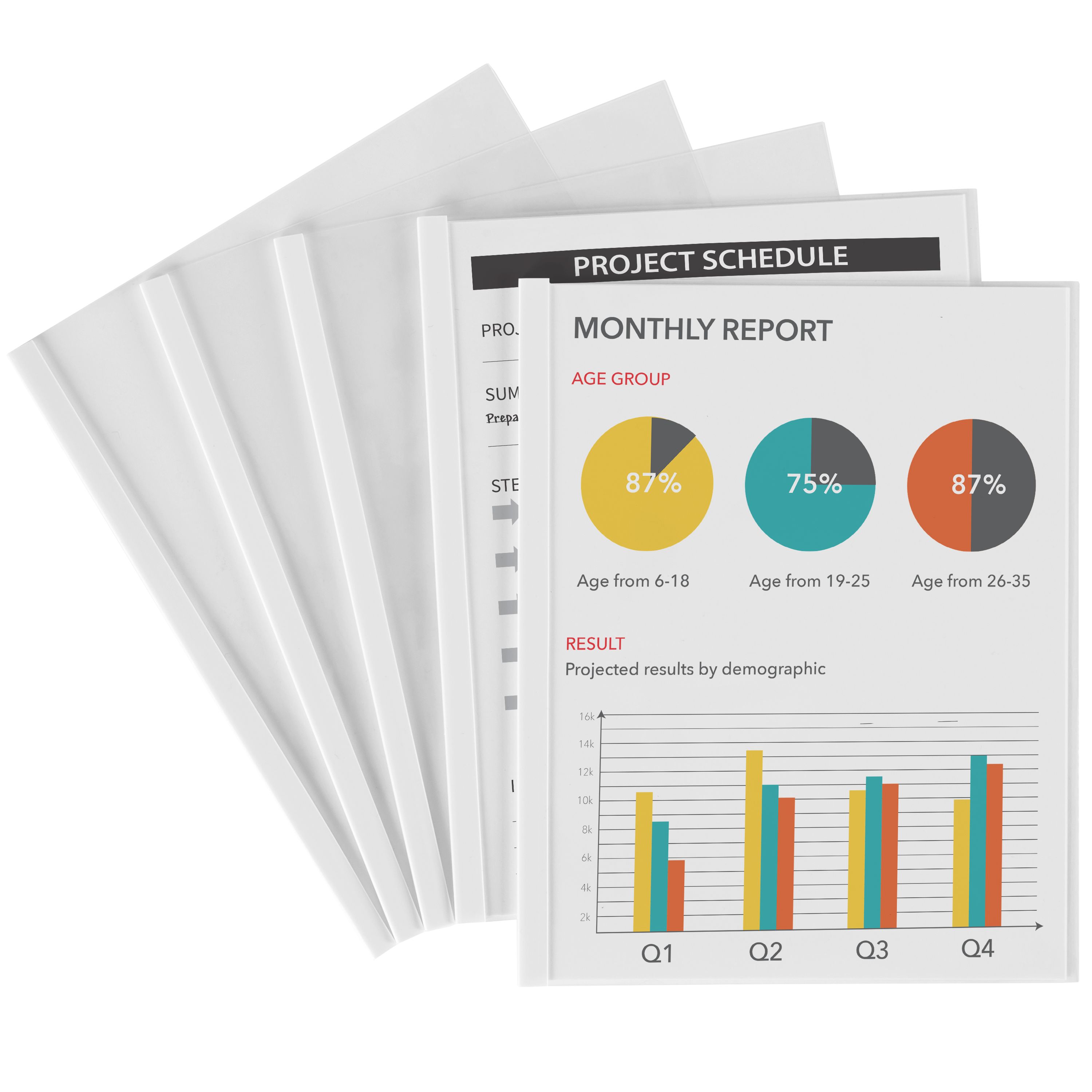 • Whether you need a school lab report cover, business report covers, or art portfolio folders, the sliding bar report covers can help display any presentation or report