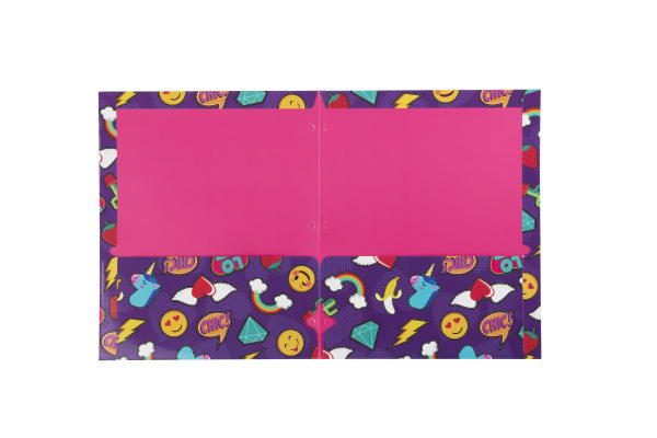 - Keep papers neat and organized in a fun folder that snaps into your binder