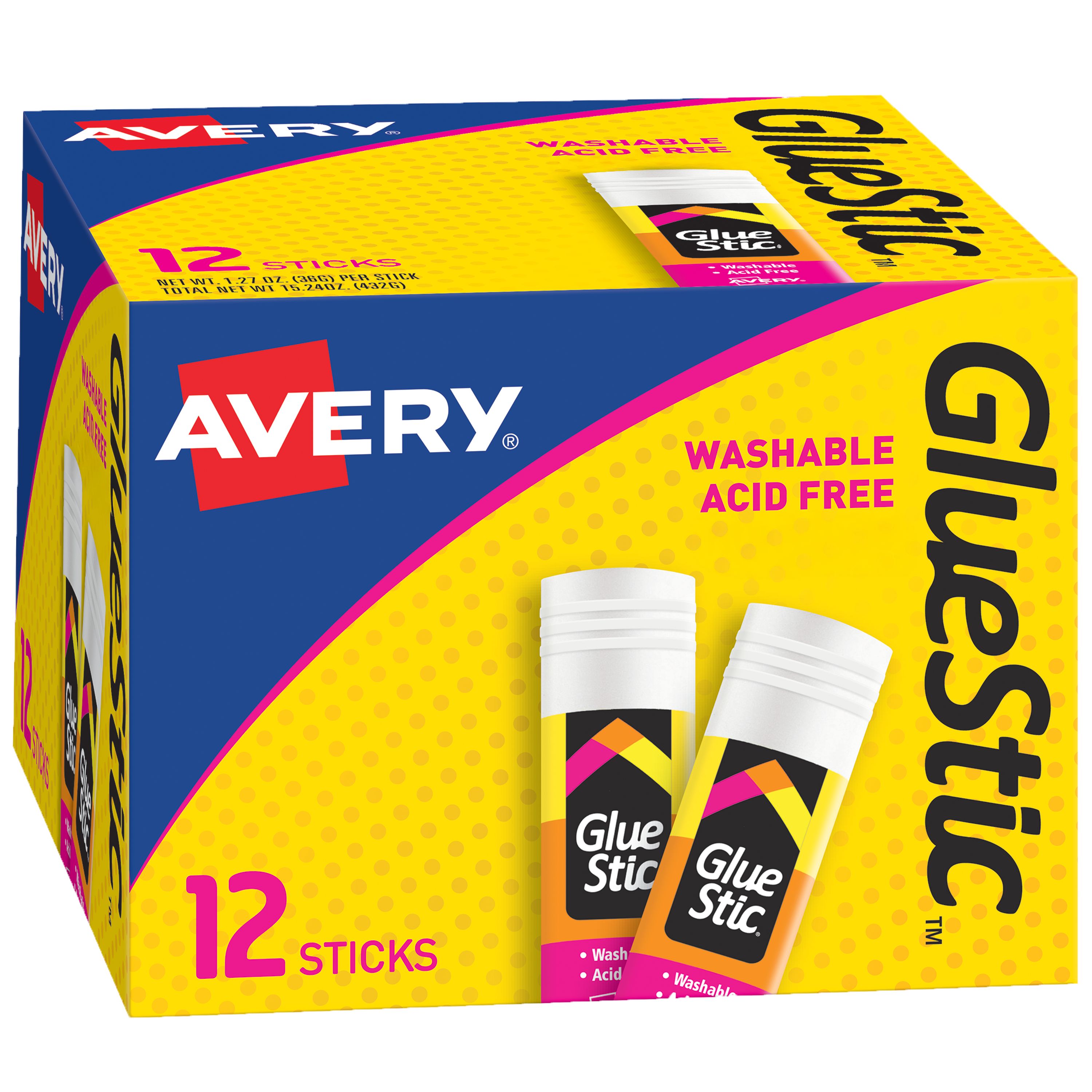Confidently apply adhesive to every spot that needs it with this Avery(R) Glue Stic. Simply lift the cap and twist the base for easy application. White glue goes on smoothly, minimizing any clumping or wrinkling, and dries clear. Holds strong with a gentle touch; permanent adhesive bonds securely to a variety of materials but washes easily off hands and clothing. White glue bonds to paper, photos, cardboard, foam board, fabric, glass and more. Avery(R) Glue Stics are a great acid-free glue to add to any student's school supply list. The larger 1.27 oz. stick covers more surface area and is excellent for projects requiring more adhesive. Whether it's for a school project, scrapbook, arts & crafts, 3d printing, or for a slime kit to make slime, Avery(R) Glue Stics are an all-purpose glue that can get the job done. Avery(R) Glue Stics are also great during the holidays. Seamlessly put the last finishing touches on your gift wrap or seal the envelope to your custom greeting card with one swipe of your glue stick. All Avery(R) Glue Stics are photo-safe, ACMI certified and conform to ASTM D 4236.