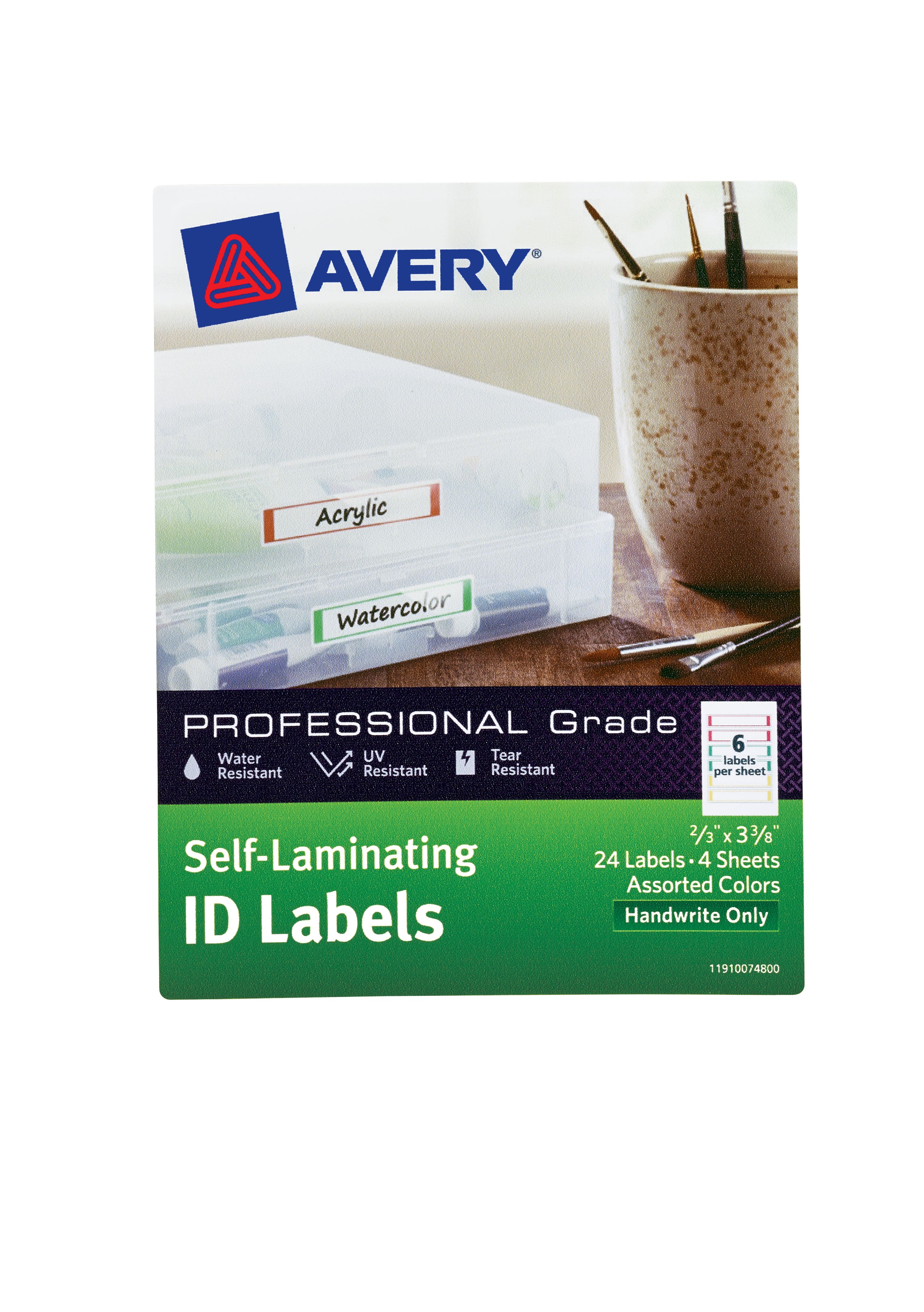 Avery® Self-Laminating ID Labels, Permanent Adhesive, Handwrite Only, 2/3" x 3-3/8", Assorted Colors, 24 Labels, (00748)