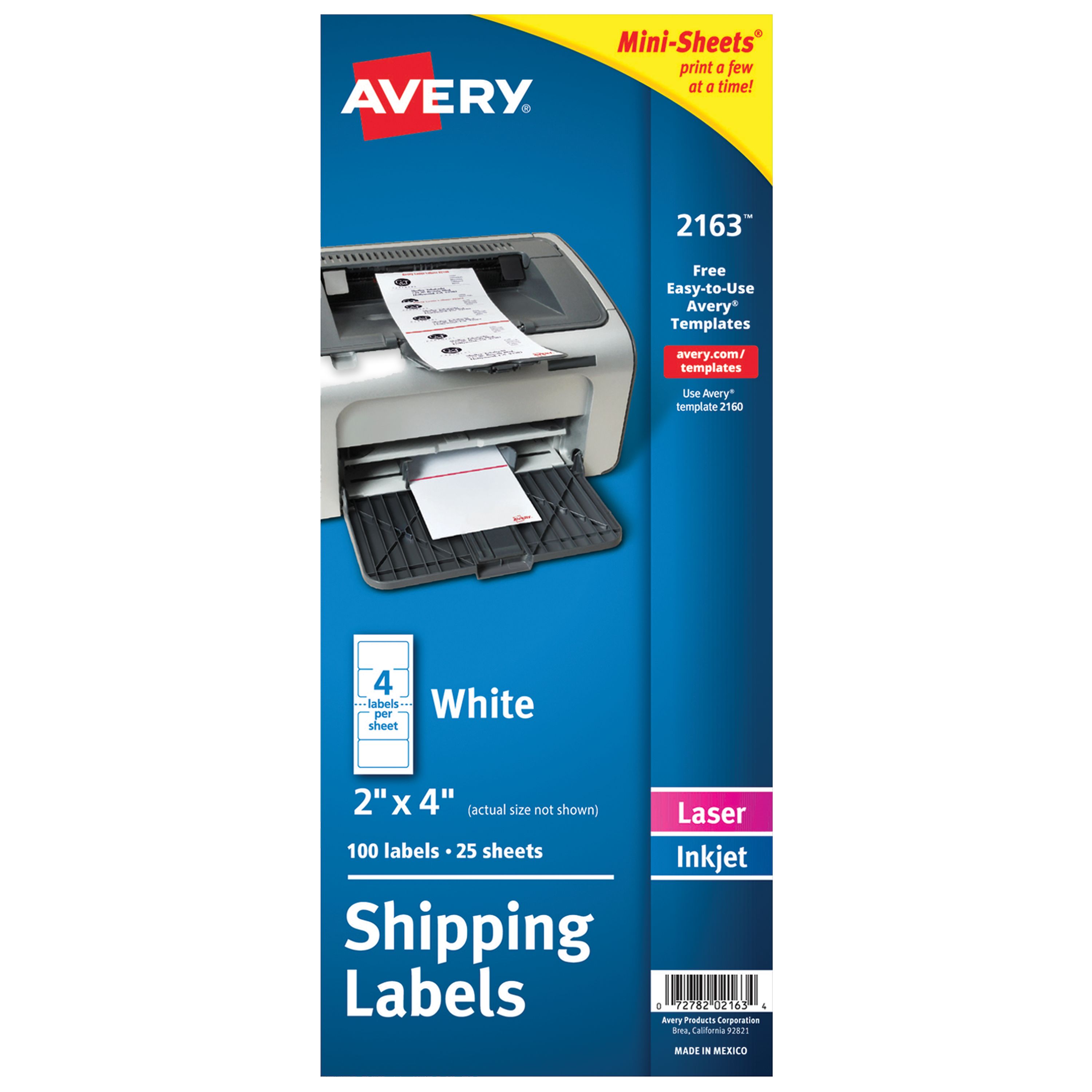 Avery® Mini-Sheets Shipping Labels, 2" x 4", White, Permanent Adhesive, Laser/Inkjet Printable, 100 Labels (2163)