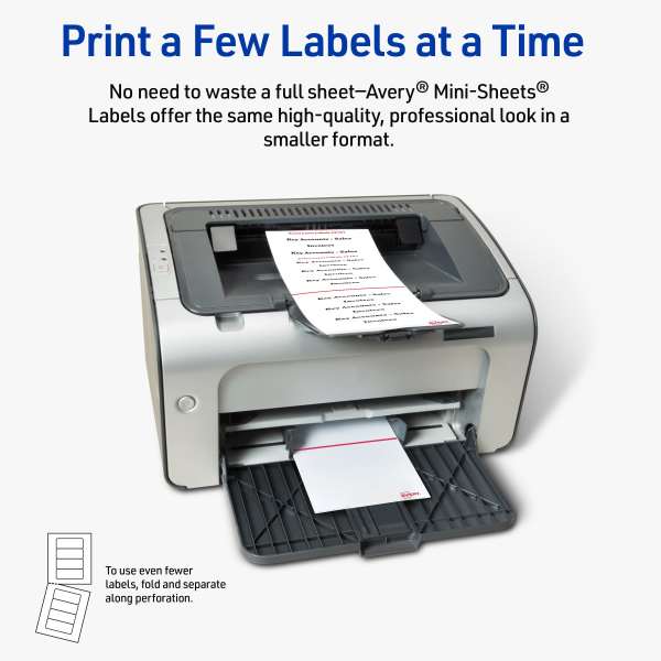 - Mini-sheets offer the same high-quality labels as full-sheet formats but on compact, 4.25" x 10" sheets