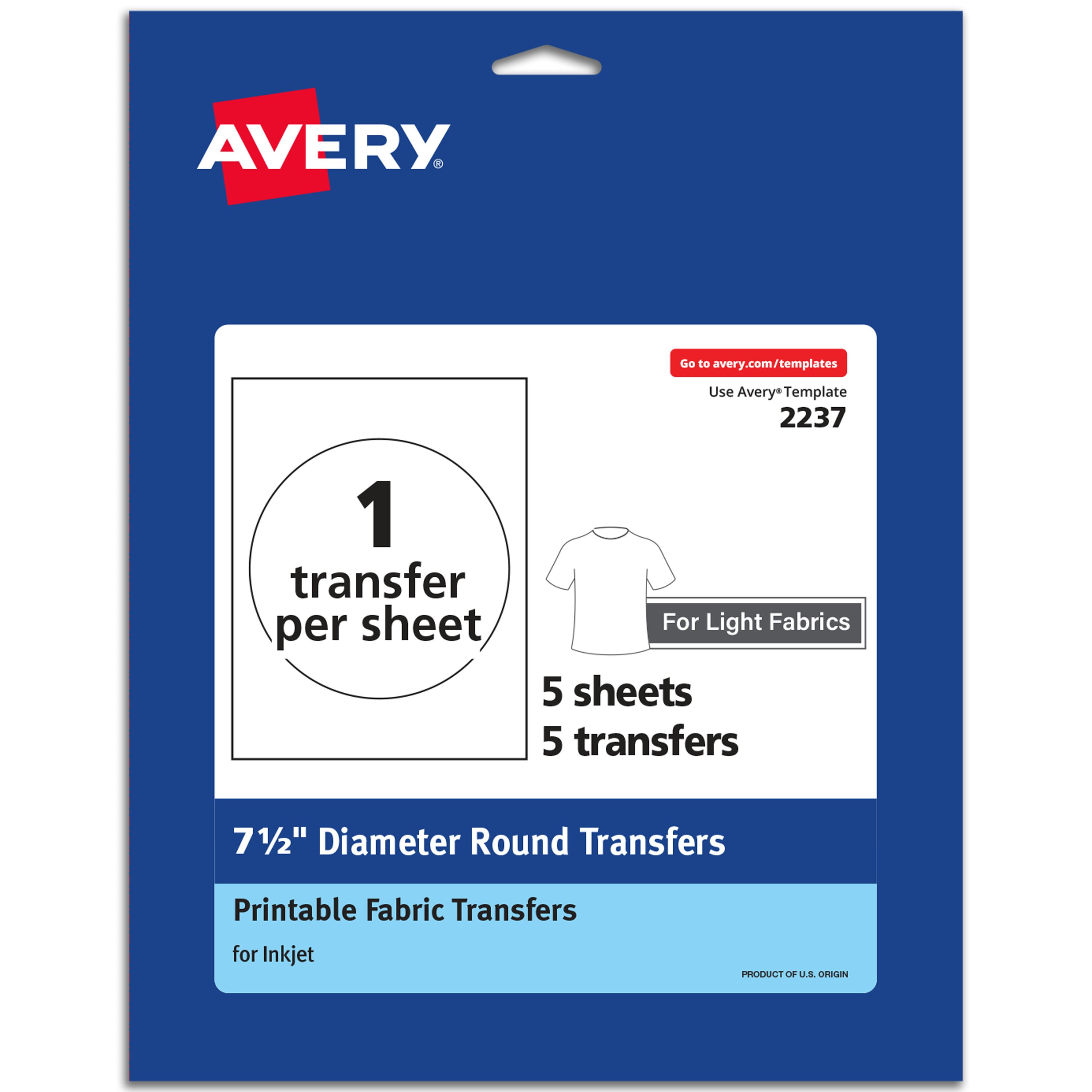 Avery® Light Fabric Transfers, 7.5" Diameter Pre Die-Cut Iron-On Circle Transfers, Inkjet, 6 Sheets, 6 Total (2237)