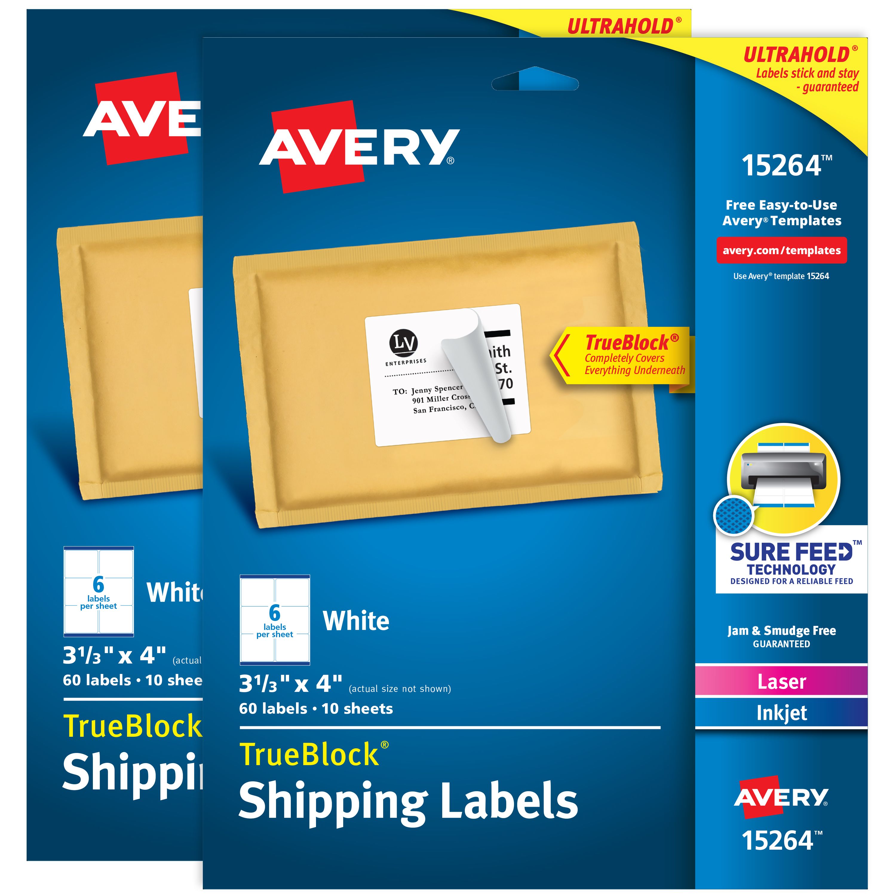 TrueBlock® Shipping Labels with Sure Feed™ Technology, Permanent, 3-1/3” x 4”, White, 2 Pack, 120 Labels (32134)