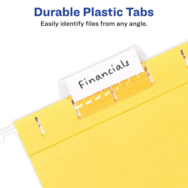 - Enjoy long-lasting, quality tabs made with strong plastic that resists tearing or bending to protect your hanging folder labels