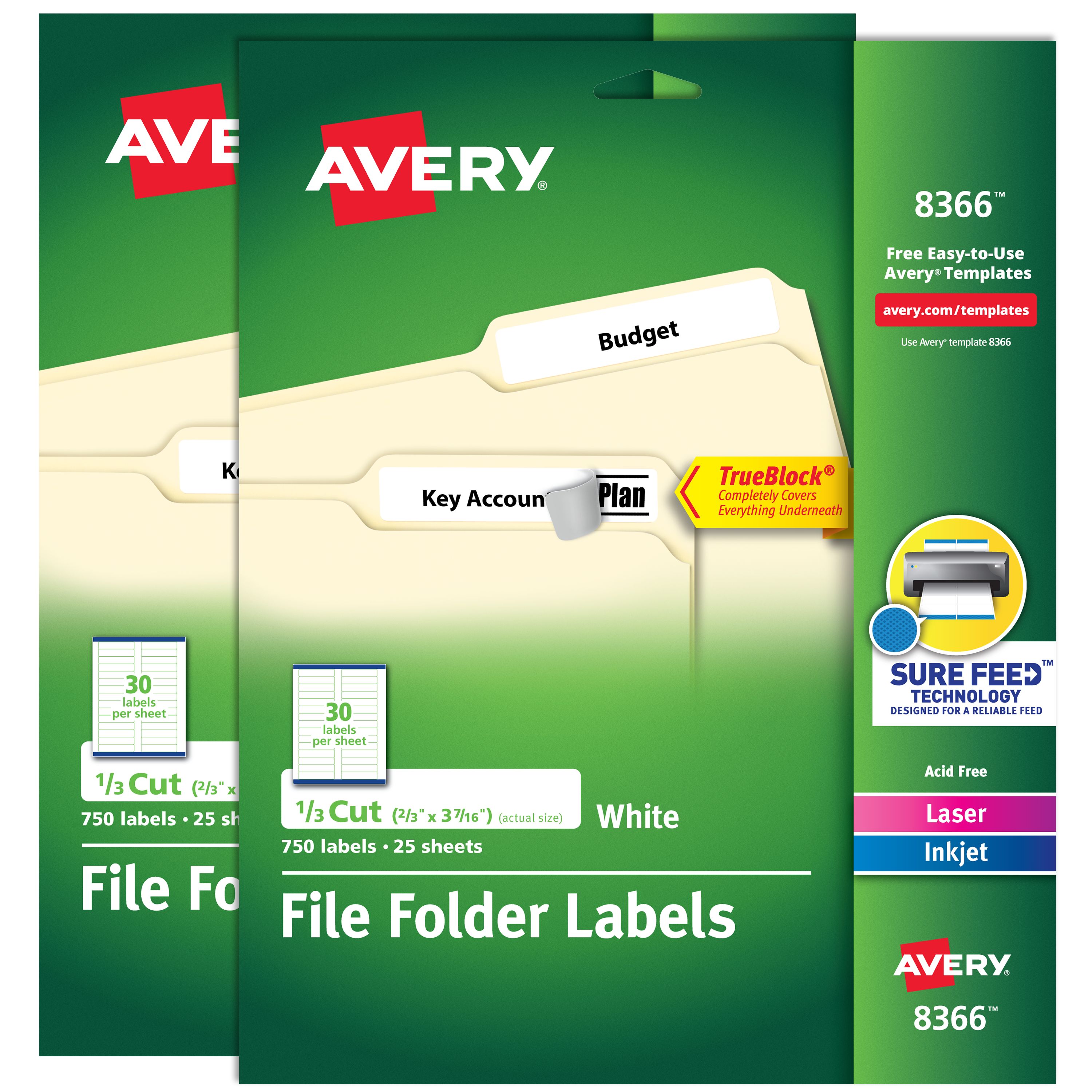 Avery® File Folder Labels with TrueBlock® Technology, Permanent Adhesive, 2/3" x 3-7/16", Laser/Inkjet, 2-Pack, 1,500 Labels Total (38366)