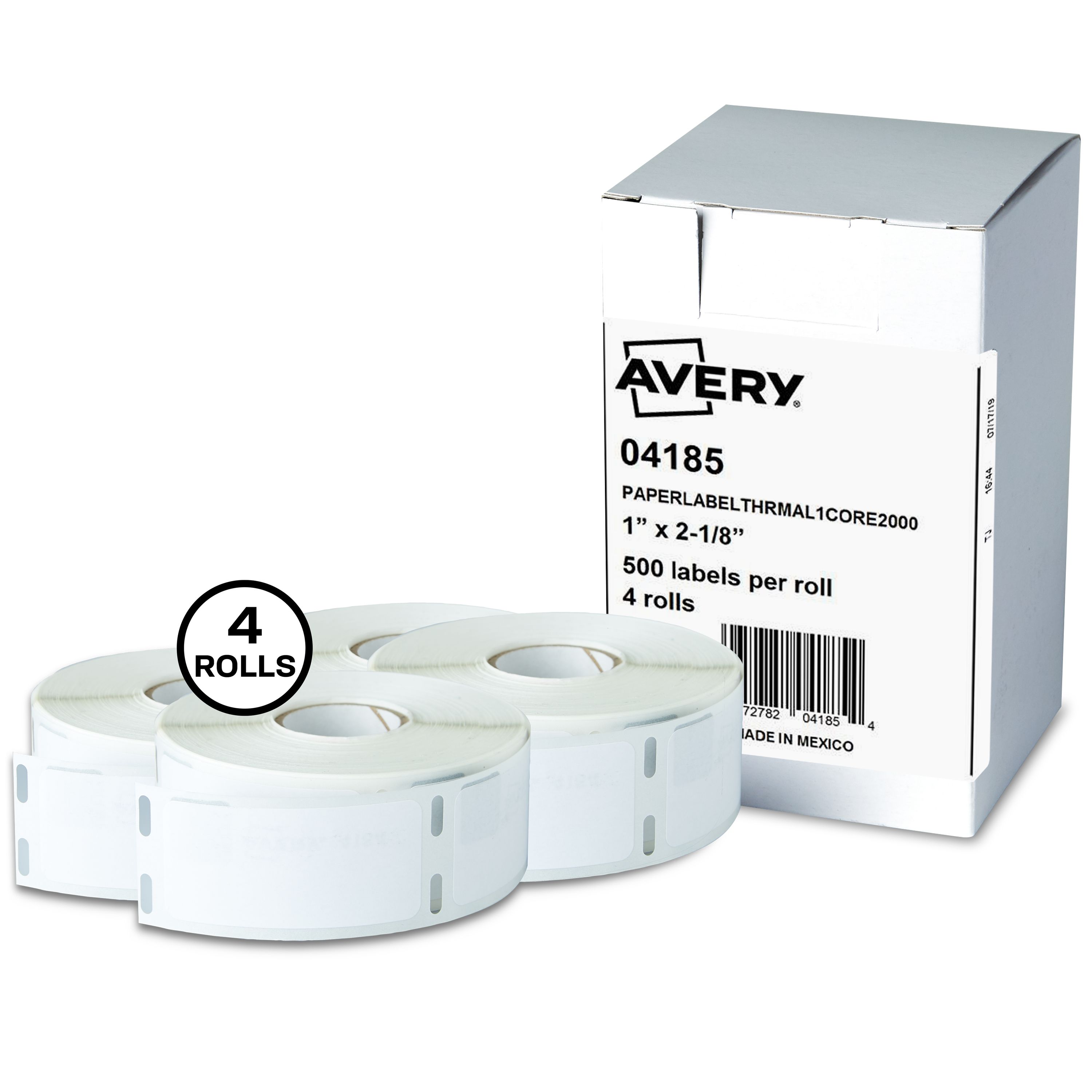 Avery® Direct Thermal Multipurpose Labels, 1" x 2-1/8", White, Permanent, 4 Rolls, Total of 2000 Labels (4185)