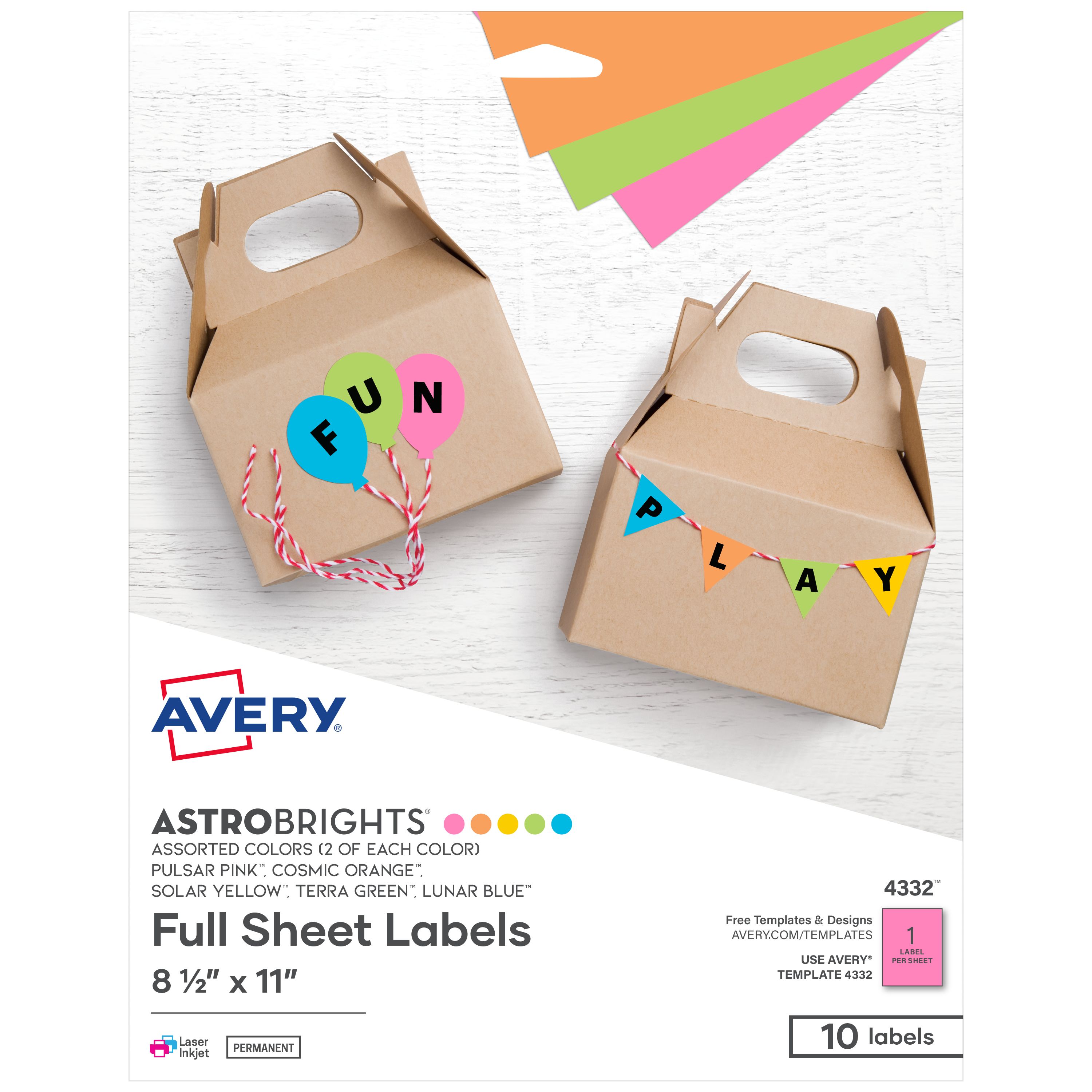 Avery® Full-Sheet Labels with Sure Feed™, Assorted Bright Colors, 8-1/2" x 11", 10 Labels (4332)