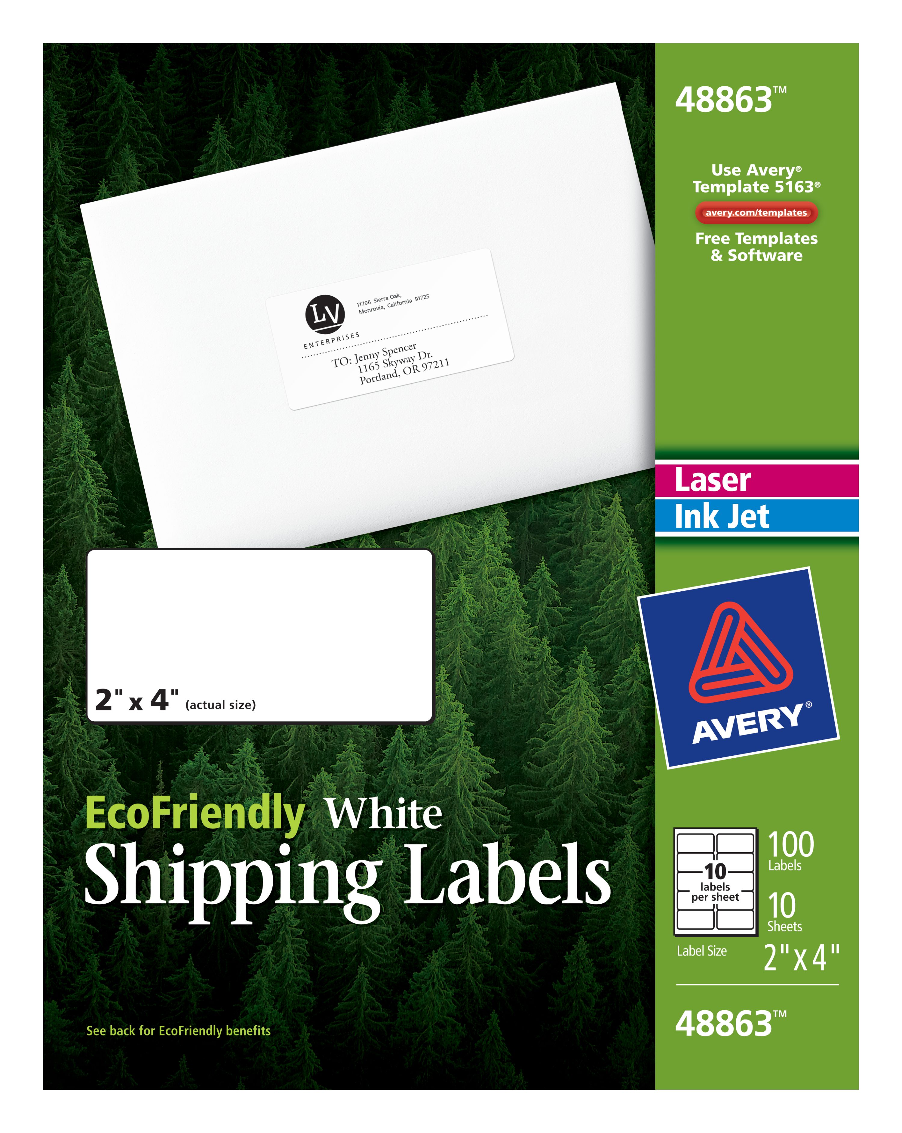 Avery® EcoFriendly Shipping Labels, Permanent Adhesive, 2" x 4", 100 Labels (48863)