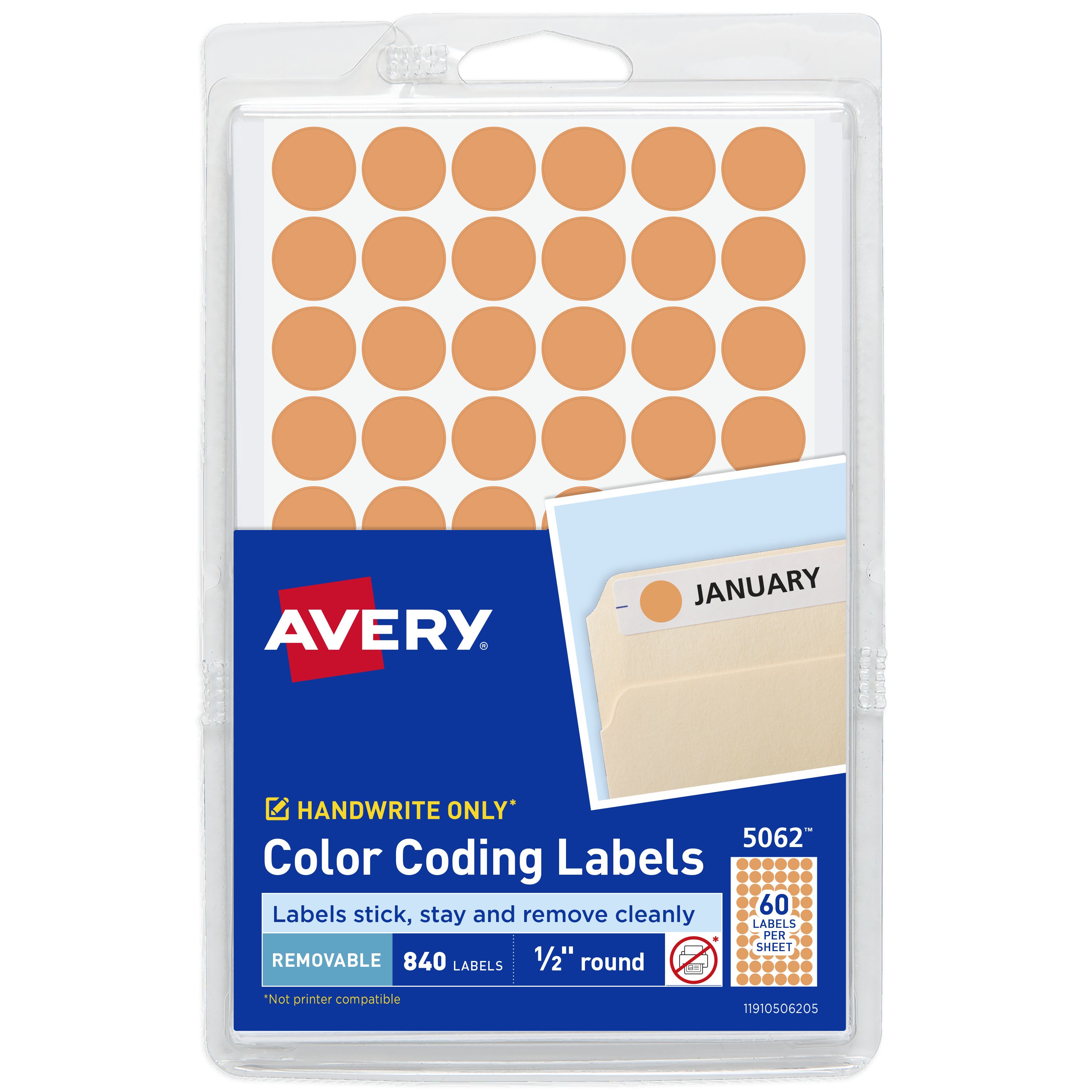 Avery® Color-Coding Removable Labels, 1/2 Inch Round Stickers, Neon Orange, Non-Printable, 840 Dot Stickers Total (5062)