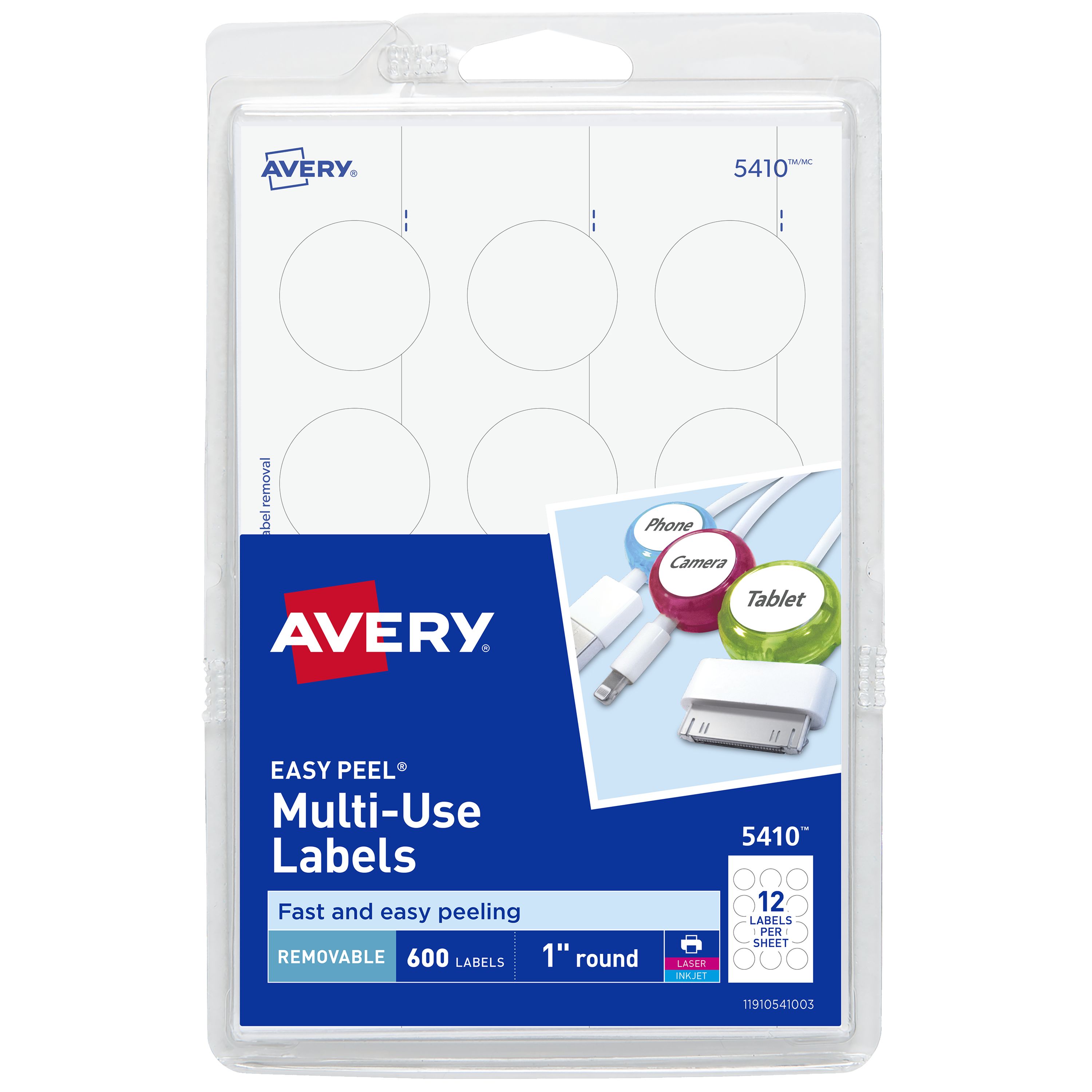 Avery® Removable Multiuse Labels, Removable Adhesive, 1" Diameter, 600 Labels (5410)