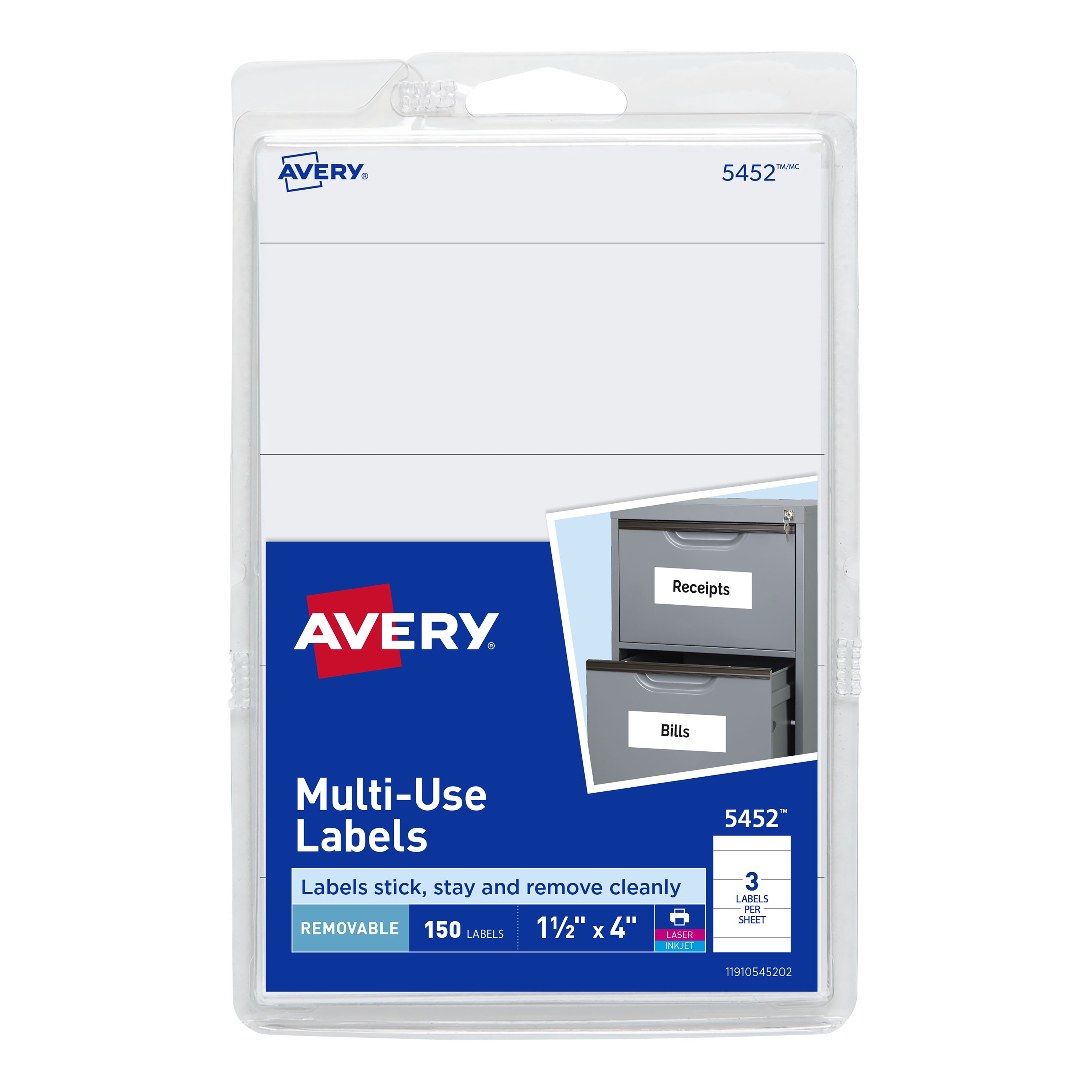 Avery® Removable Labels, Removable Adhesive, 1-1/2" x 4", 150 Labels (5452)
