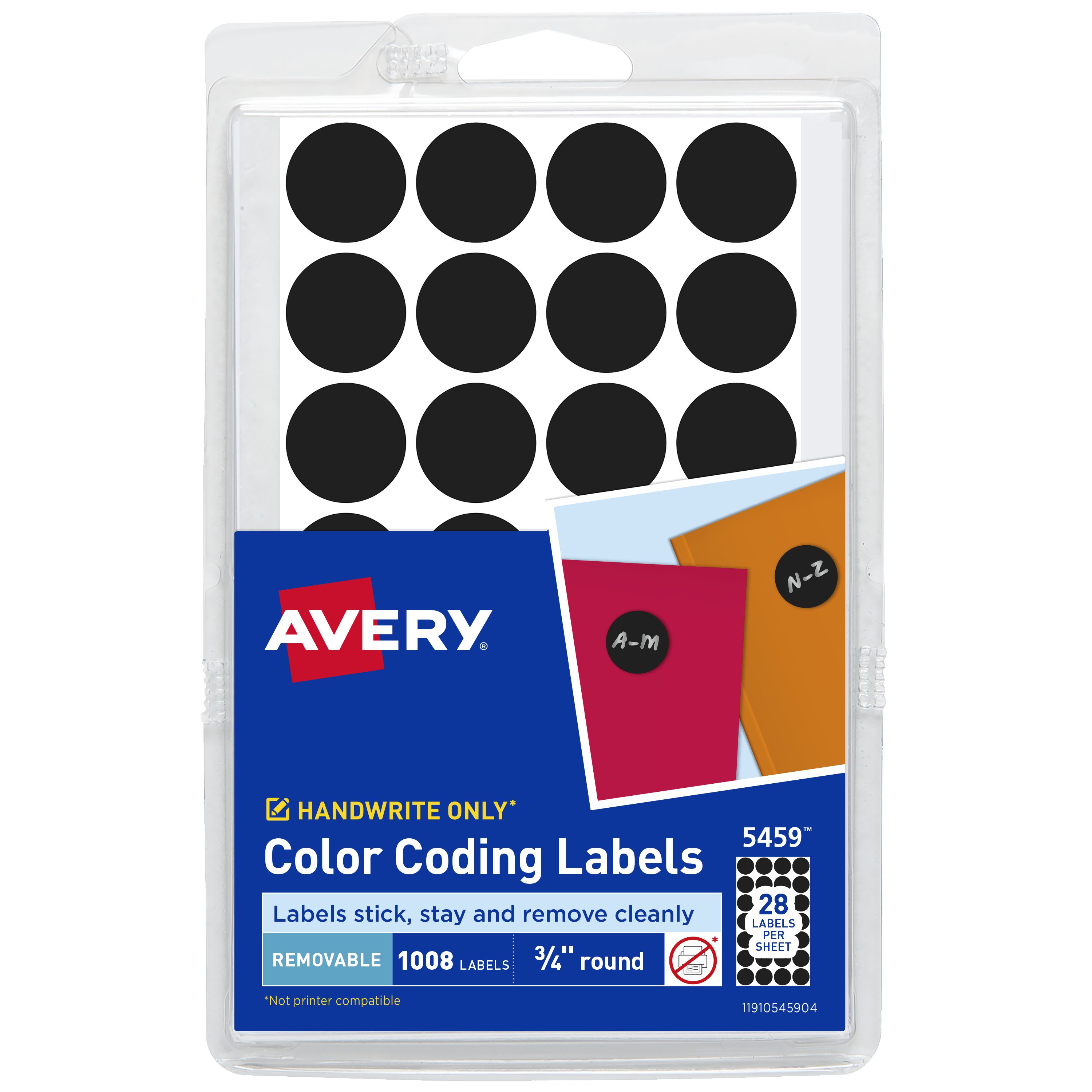 Avery® Color-Coding Removable Labels, 3/4 Inch Round Stickers, Black, Non-Printable, 1,008 Dot Stickers Total (5459)