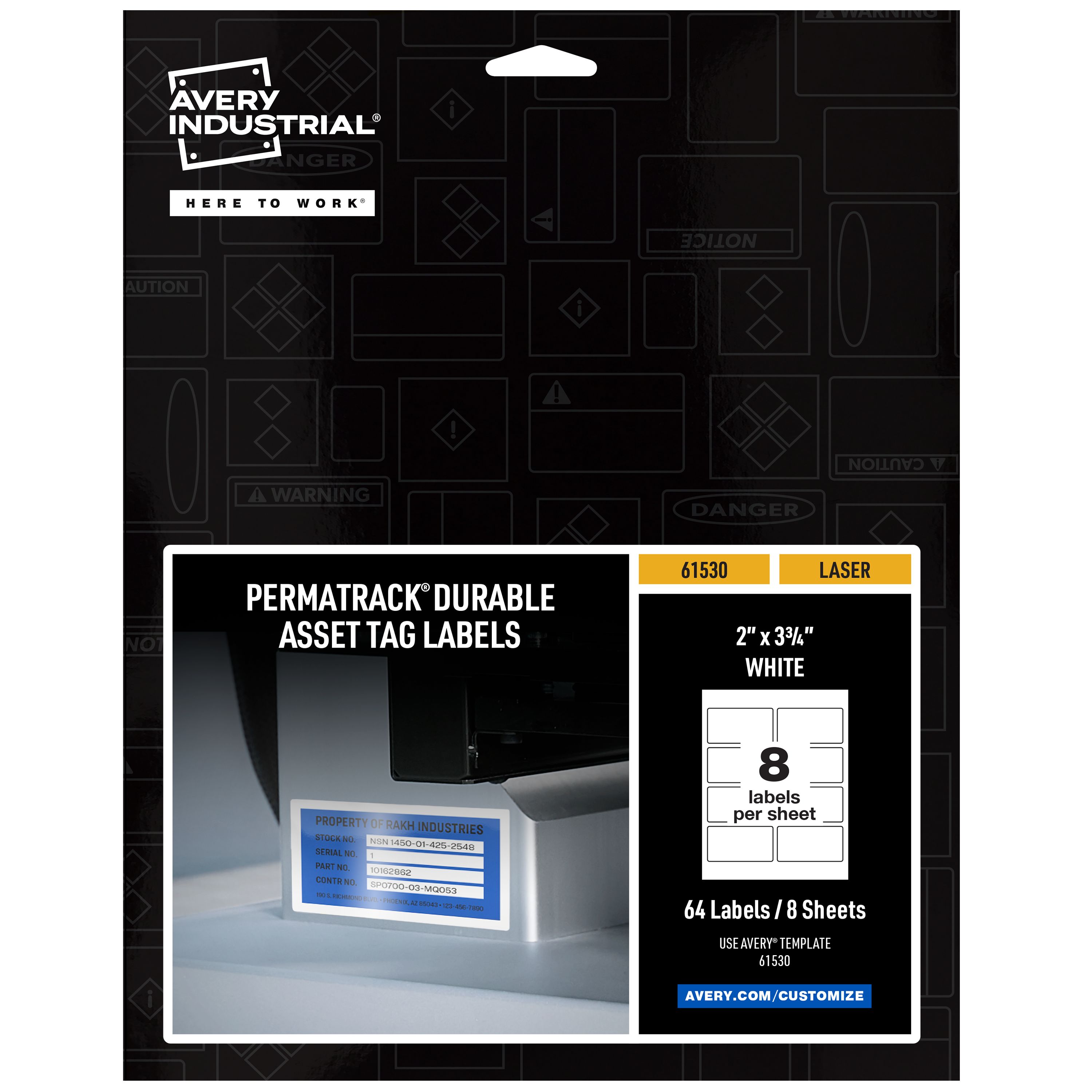 Avery® PermaTrack® White Asset Tag Labels, 3-3/4" x 2", 64 Labels (61530)