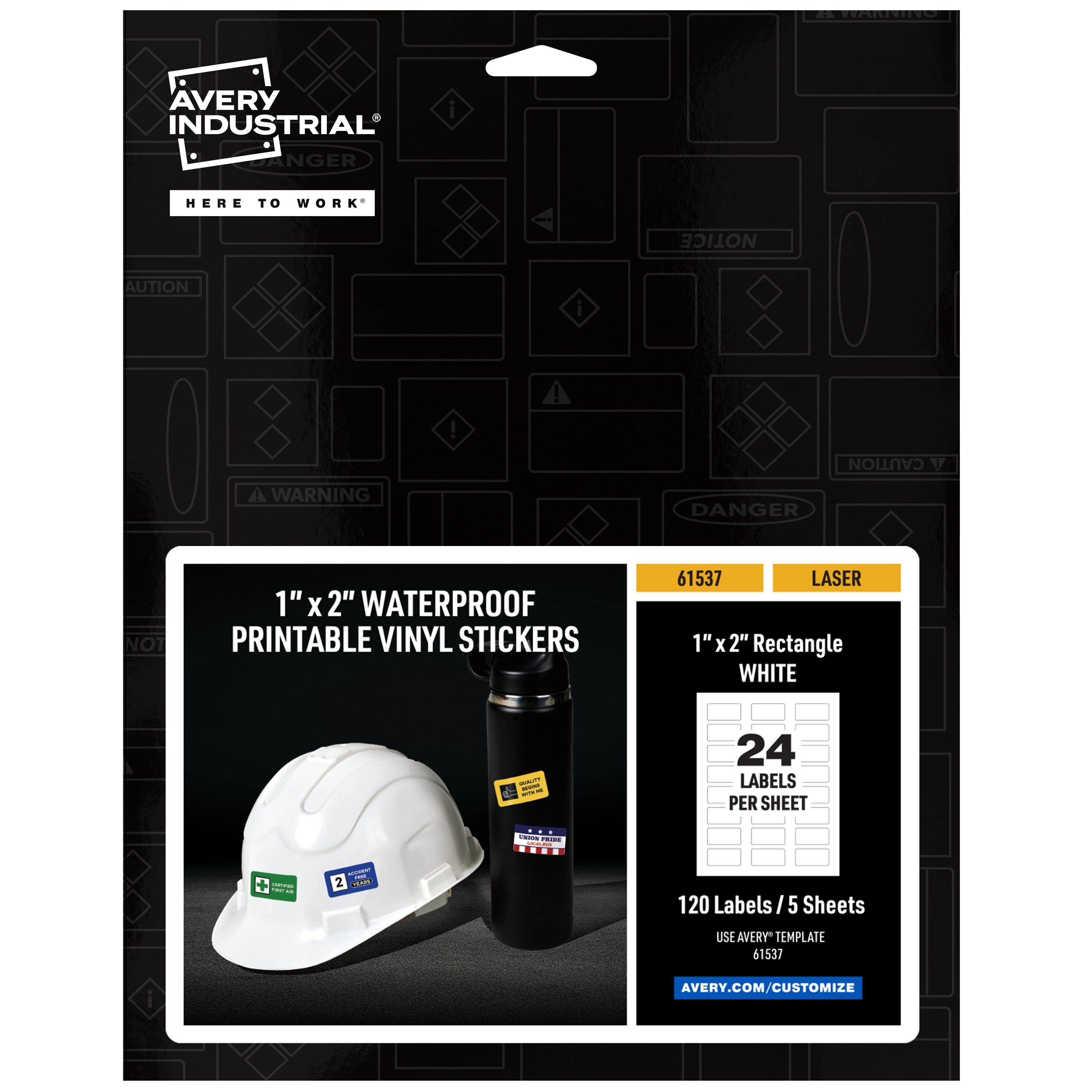 Design your own hard hat stickers, laptop stickers, water bottle stickers, and more with durable, customizable vinyl sticker material with 1" x 2" Avery 61537 Vinyl Printable Waterproof Stickers. Made with durable vinyl, the waterproof material is also resistant to chemicals, abrasion and fading from UV radiation. The non-reactive permanent adhesive and non-conductive material also makes Avery stickers a safe and easy way to display safety certifications.