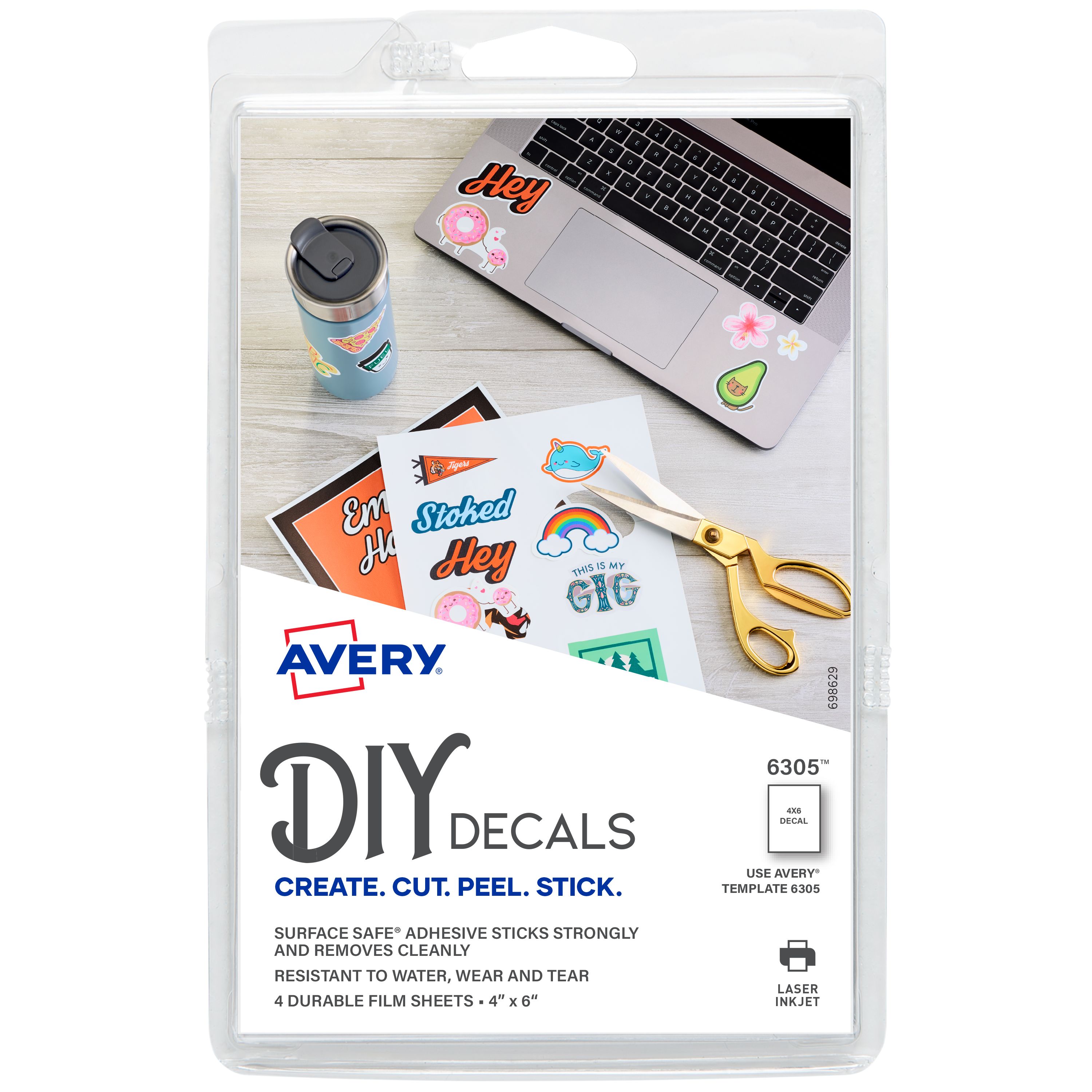 Avery® Surface Safe™ Printable Decal Stickers, Removable Adhesive, 4" x 6", Water & Tear Resistant, 4 Labels (6305)