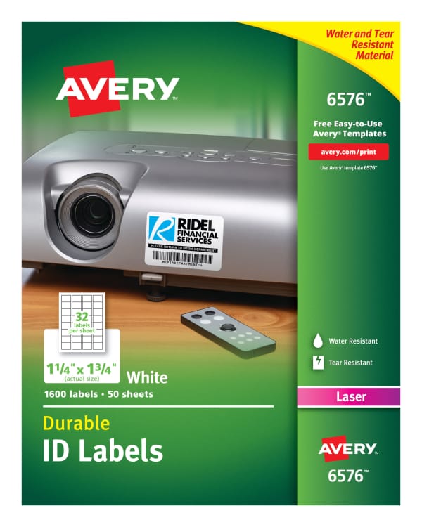 Avery® Durable ID Labels, Permanent Adhesive, 1-1/4" x 1-3/4", 1,600 Labels (6576)