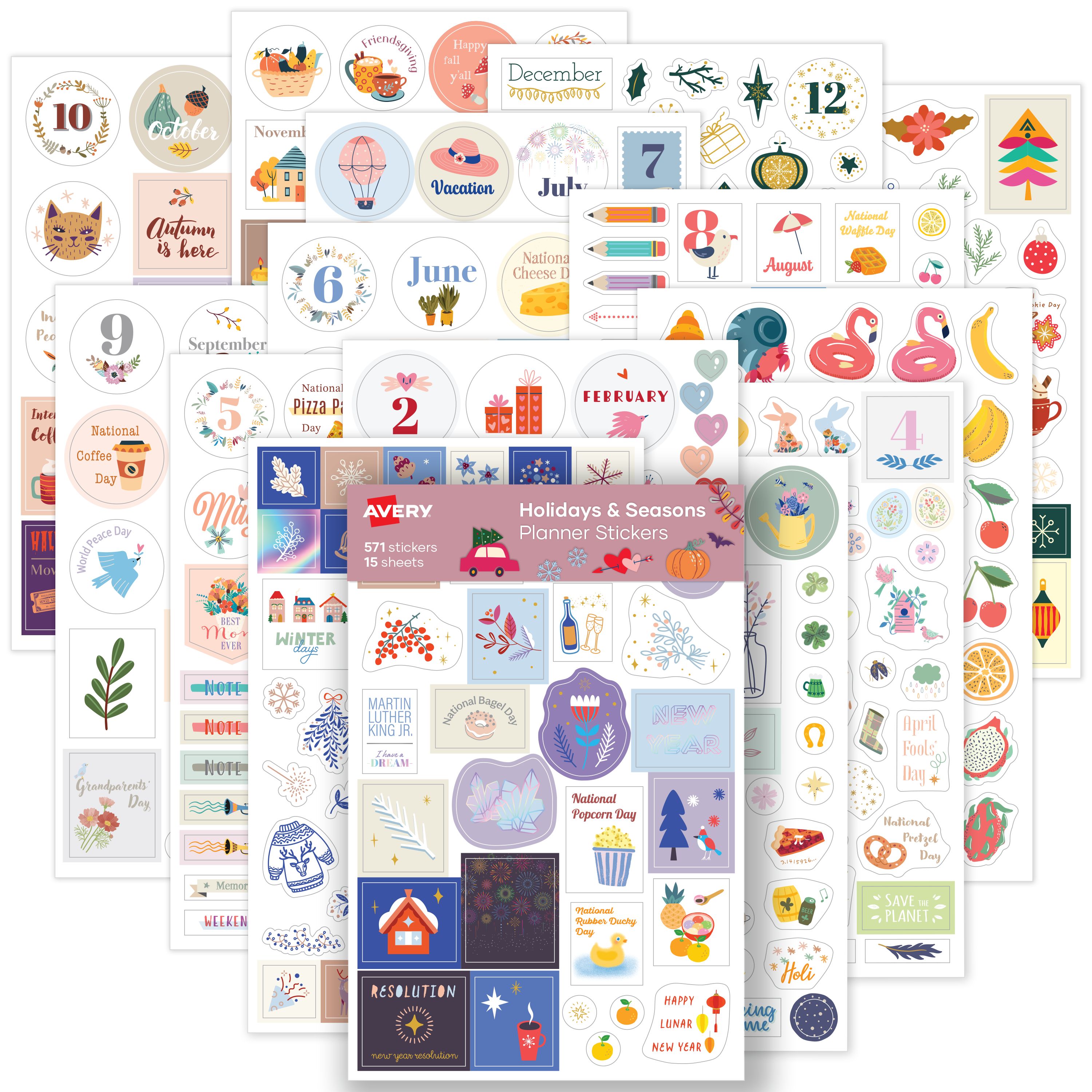 Avery® Holidays and Seasons Planner Sticker Pack, 15 Sheets, 571 Total (6776)