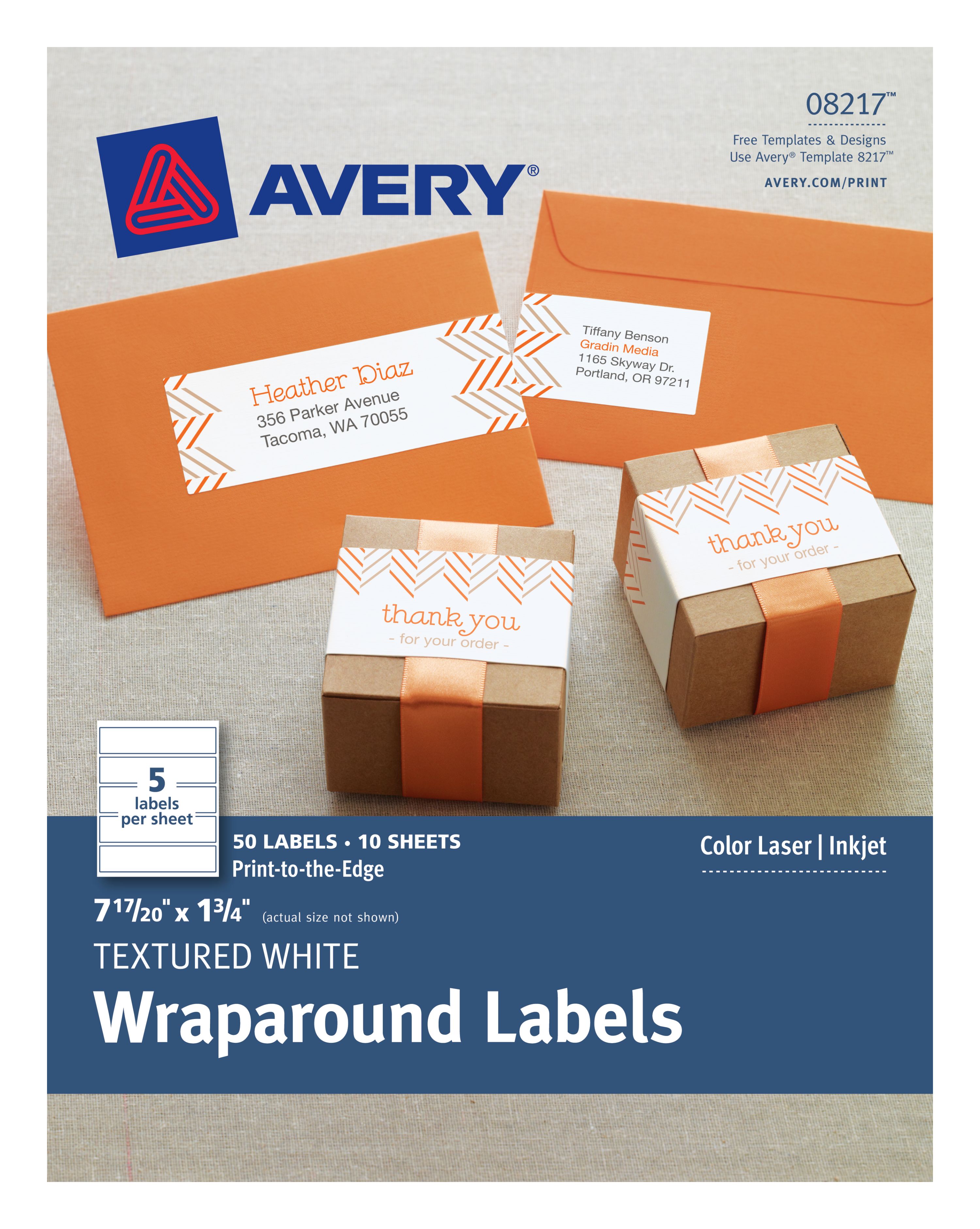 Avery® Wraparound Labels, Water-Resistant, Textured, 7-17/20" x 1-3/4", 50 Labels (8217)