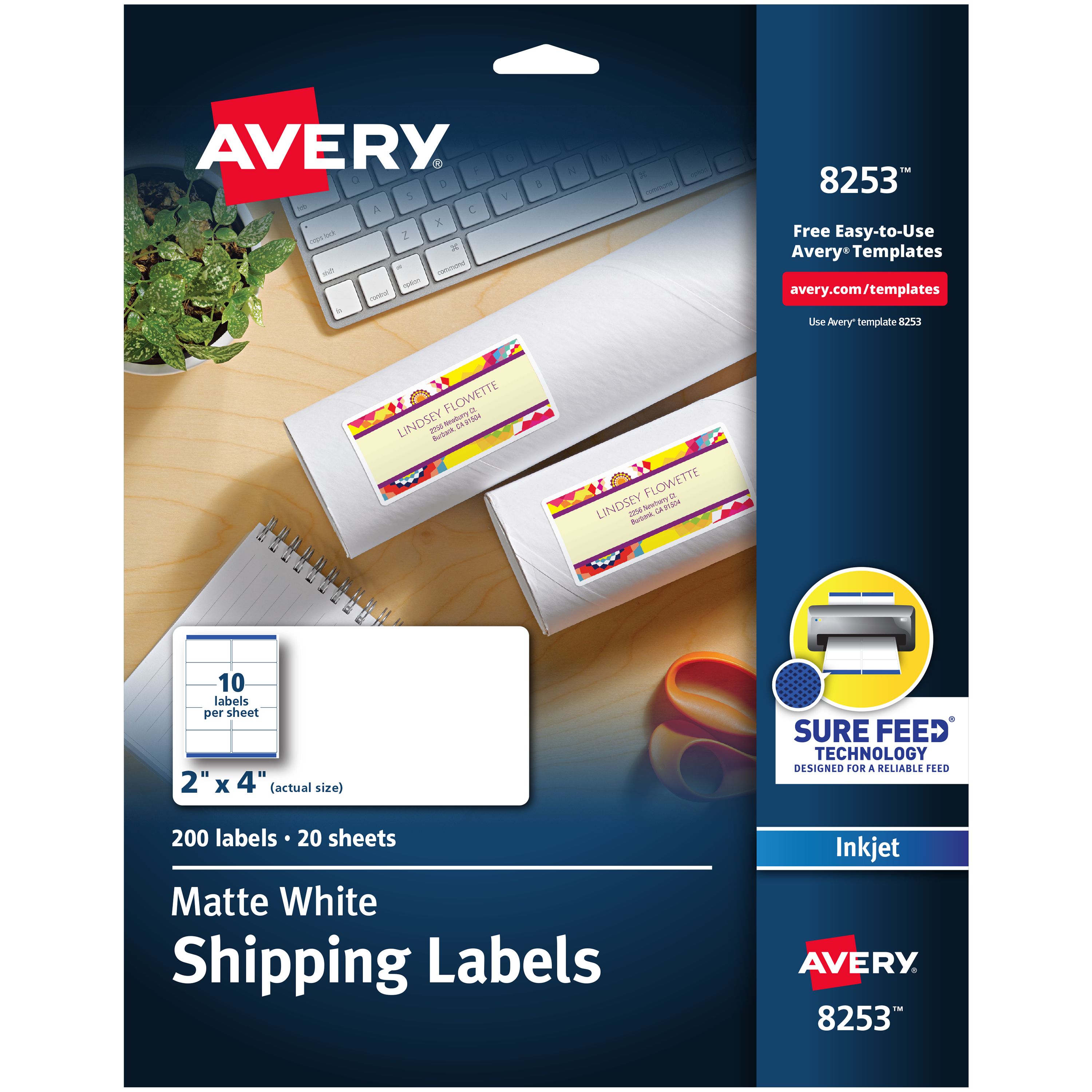 - Avery 8253 Labels feature proprietary Sure Feed™ technology to deliver a more reliable feed through your printer, preventing misalignments and jams