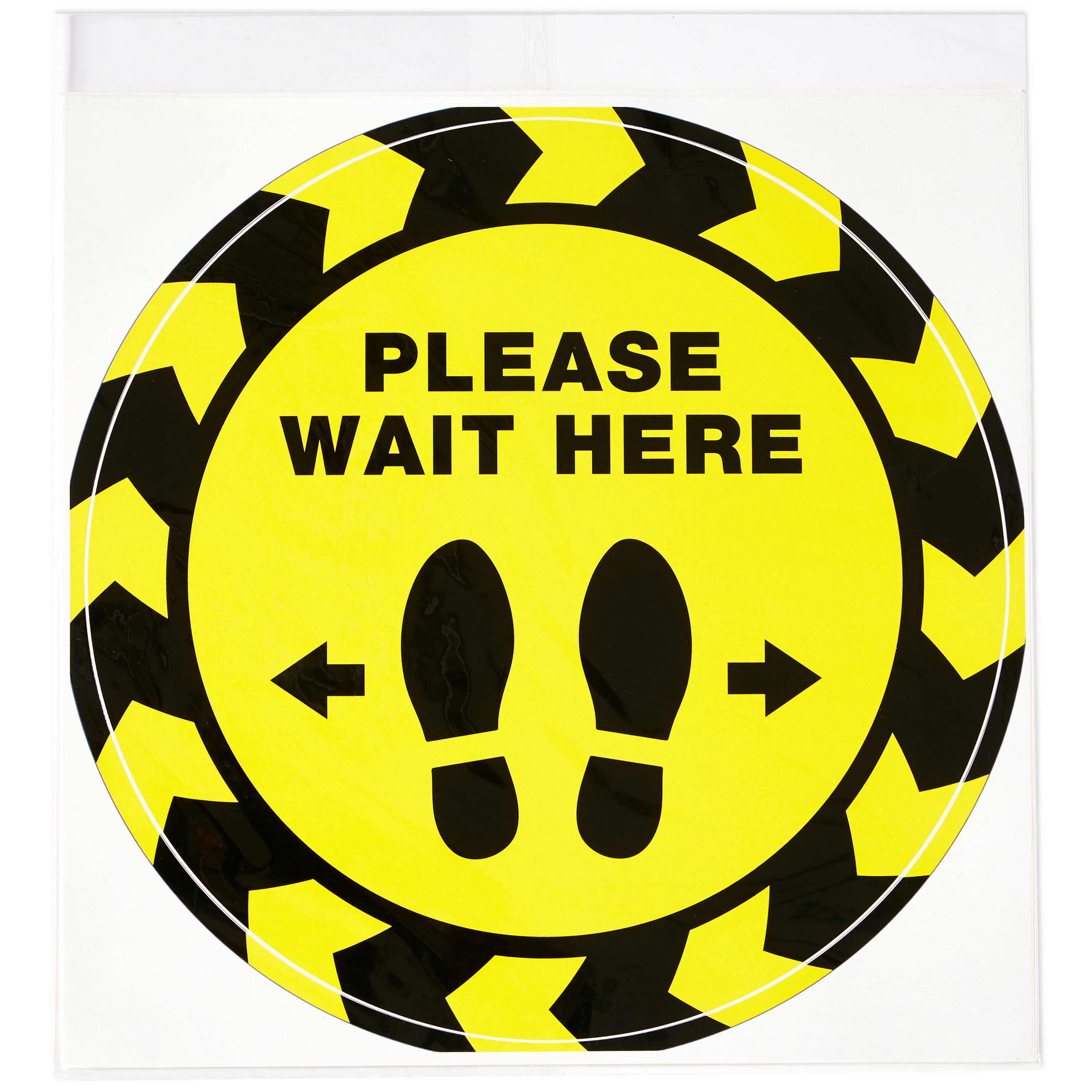 - Keep customers at a safe distance with semi-glossy "Please Wait Here" floor decals with an eye-catching yellow and black pattern
