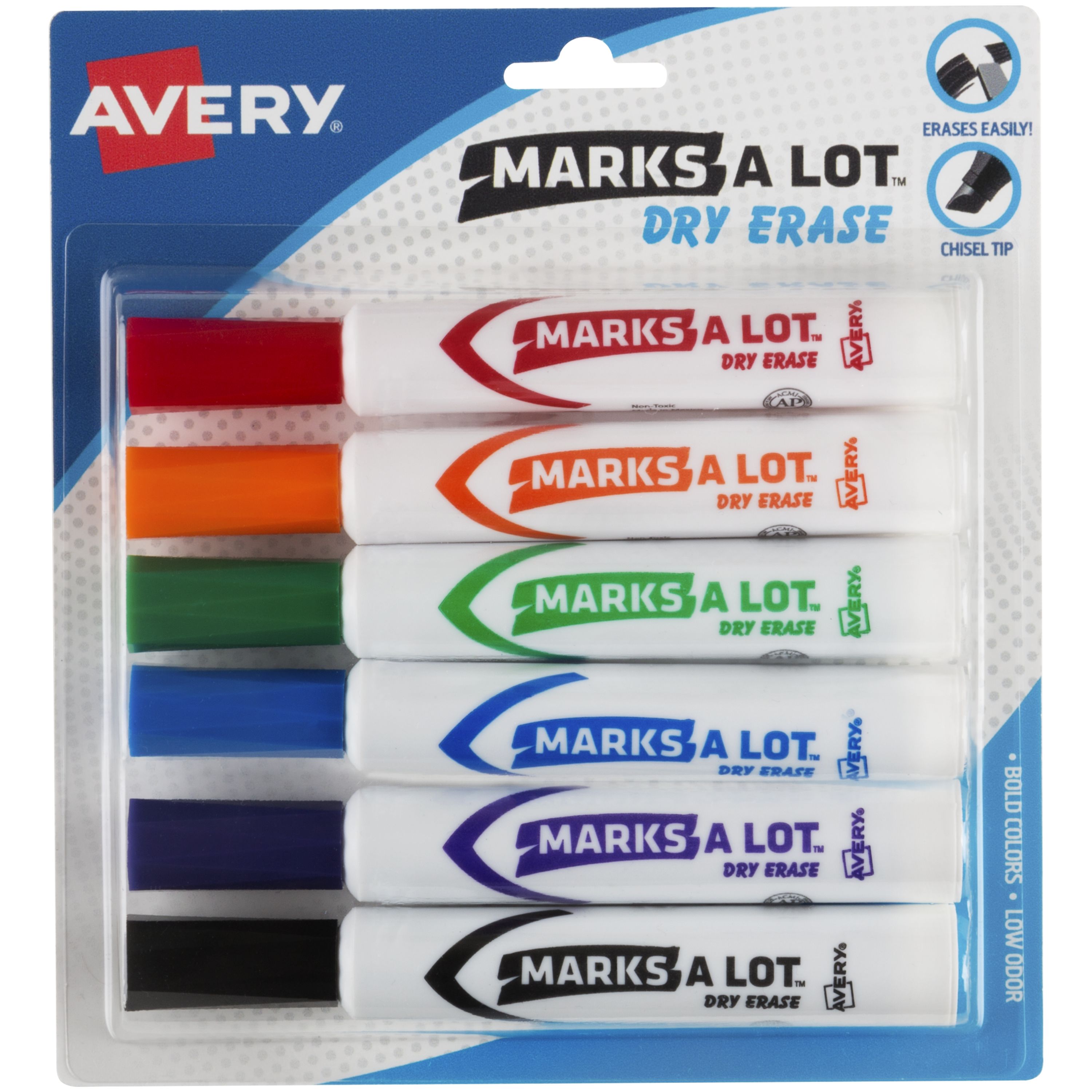 Avery® Marks A Lot® Desk-Style Dry Erase Markers, Chisel Tip, Assorted Colors, 6 Markers (24432)