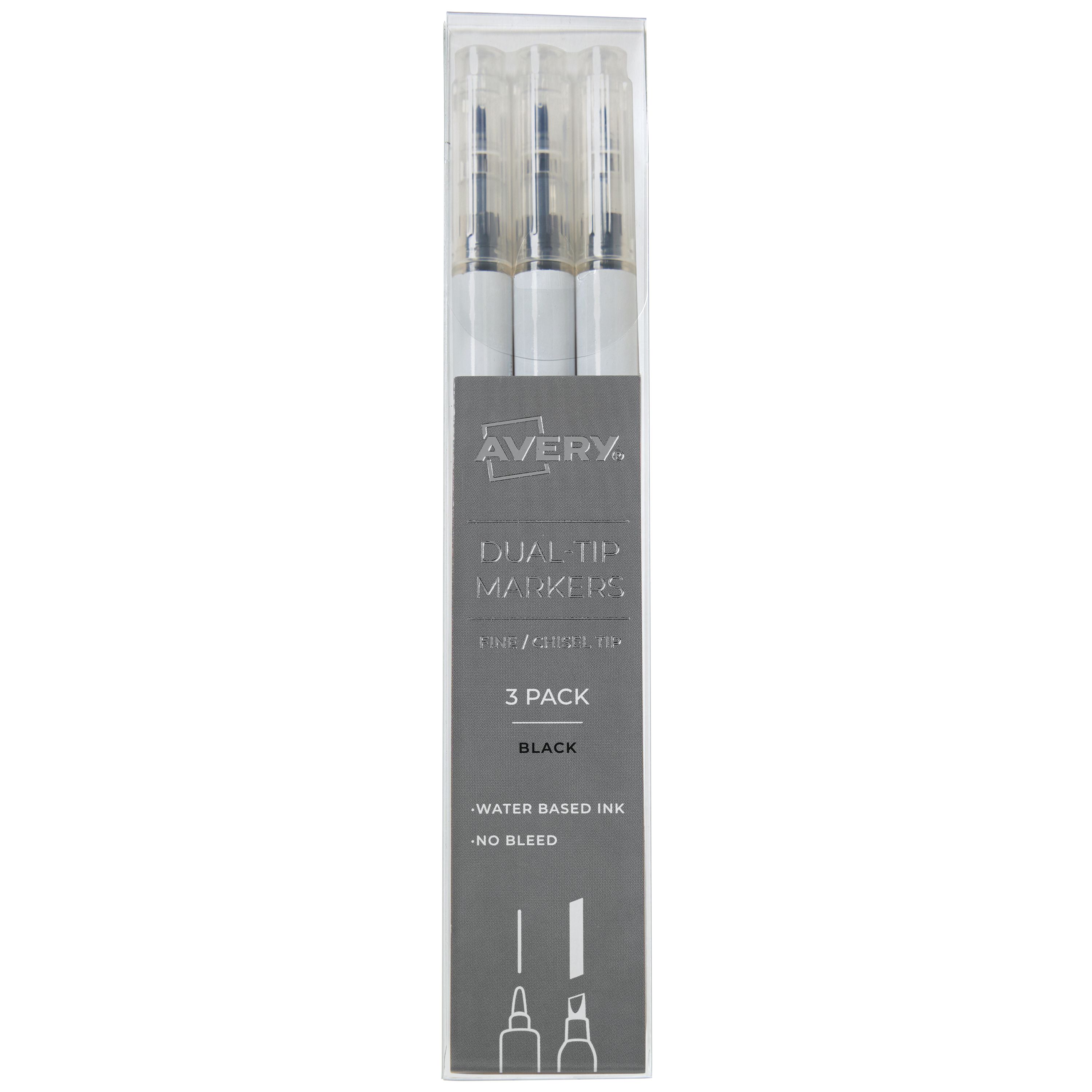 Avery® Dual Tip Markers, Fine Tip Marker and Chisel Tip Marker, Quick-Drying Water-Based Markers, Black, Ideal Planner Markers and Bullet Journal Markers, 3-Pack (25001)