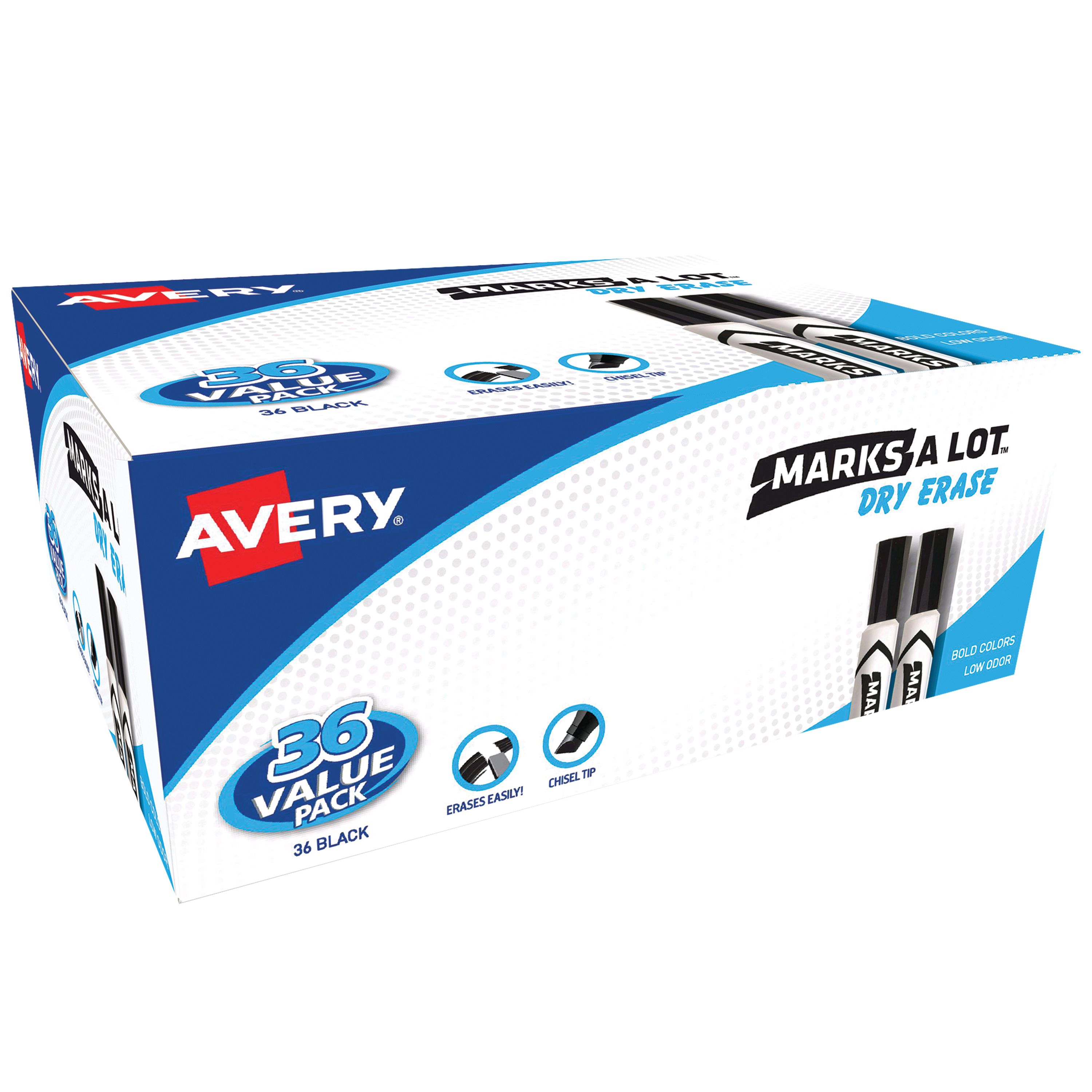Avery(R) Marks A Lot(R) Desk-Style Dry Erase Markers, Black, Value Pack of 36 (98207)