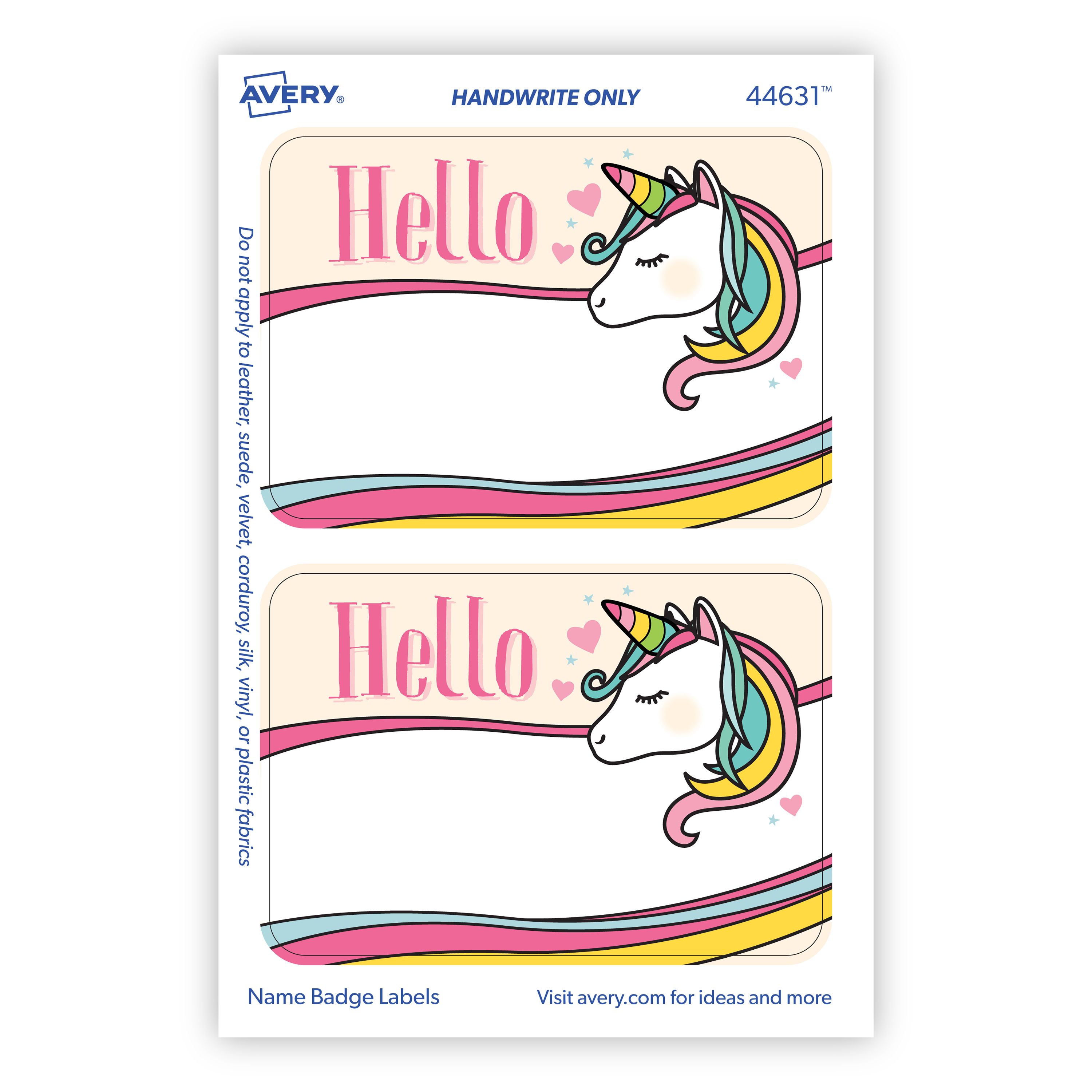 Avery® Premium Rainbow Unicorn Name Tags, No Lift No Curl, Handwrite Only, 36 Name Stickers (44631)