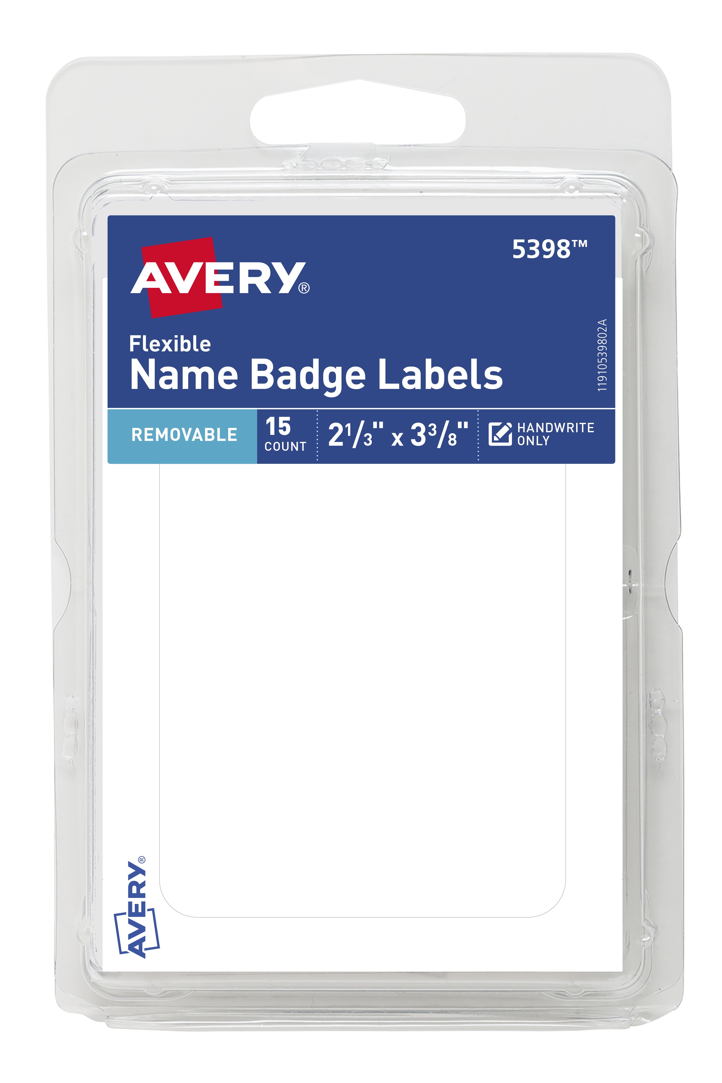 Avery® Self-Adhesive Removable Name Badges, Handwrite Only, 2-1/3" x 3-3/8", 15 Badges (5398)