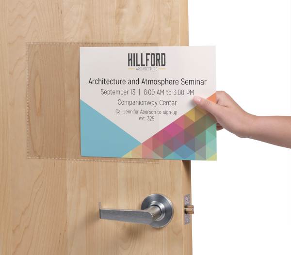 Keep your signs, schedules and important messages looking clean and sharp for as long as they're posted with Avery 74404 Removable Self-Adhesive Display Protectors. This pack of 10 display protectors offers durable material that ensures your posted information looks as good as new even after they've been hanging around for a while. Each display protector features two strips of removable adhesive that allow you to affix your display firmly and remove it easily without damaging the surface. View your papers with impressive clarity through the diamond clear polished finish, while the durable material ensures your papers are protected from dirt, spills and tearing. The acid-free and archival-safe material won’t lift or transfer ink, so your documents stay neat and clean. Inserting and removing sheets up to 8-1/2” x 11” is quick and easy with the convenient top-loading feature and each display protector can hold up to 20 sheets. With these self-adhesive sheet protectors, all signs point to success.